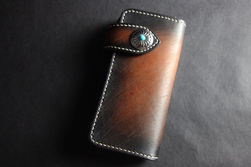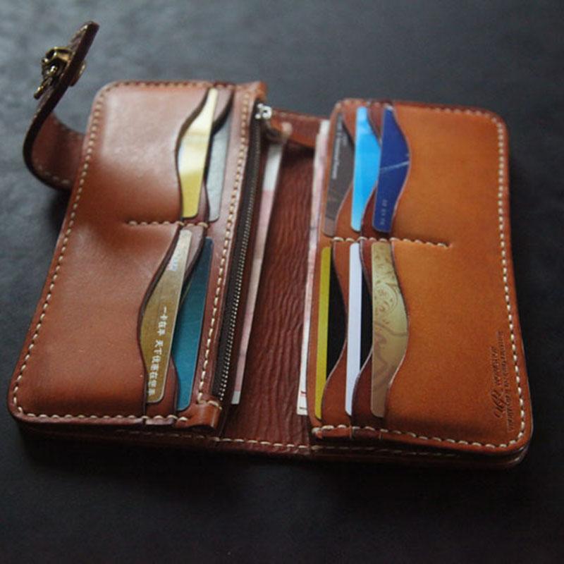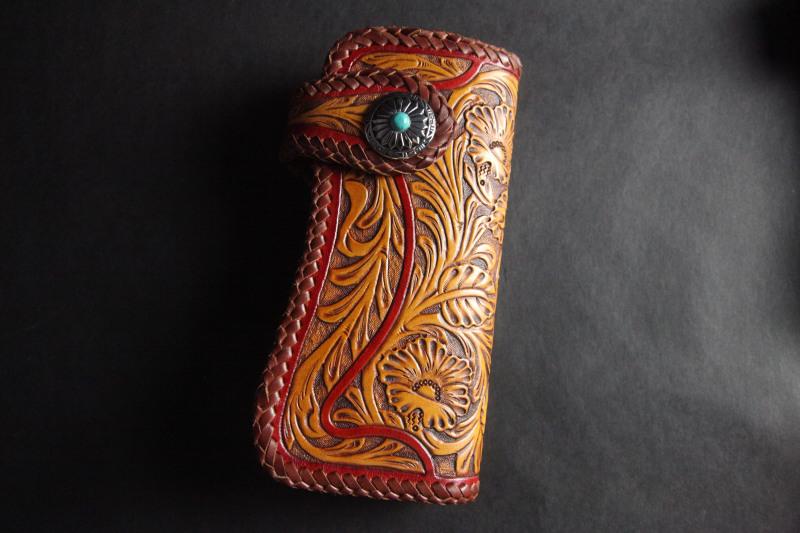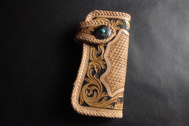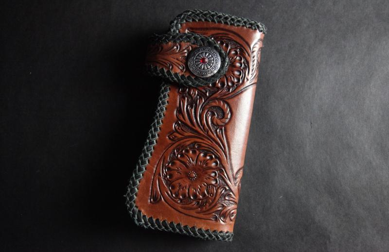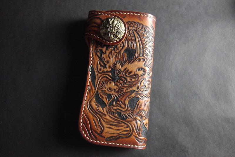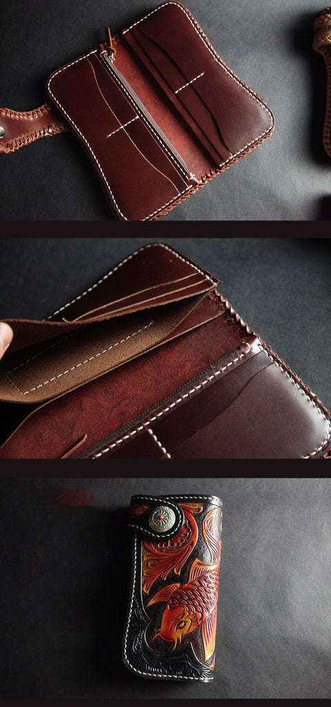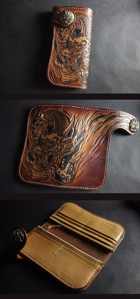 Style: Handmade Skull Tooled Black Leather Mens Long Biker Wallet Biker Chain Wallet For Men