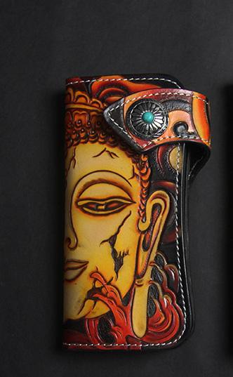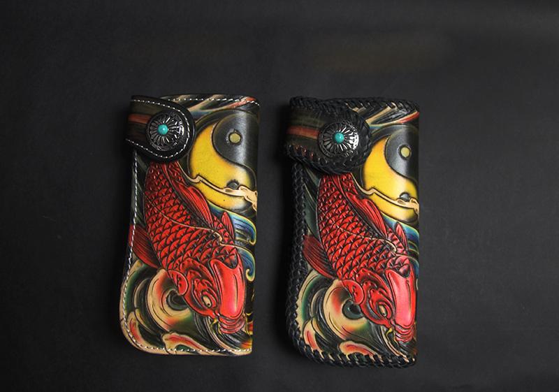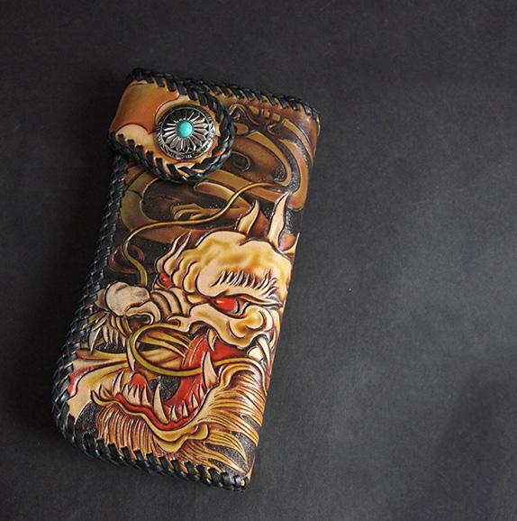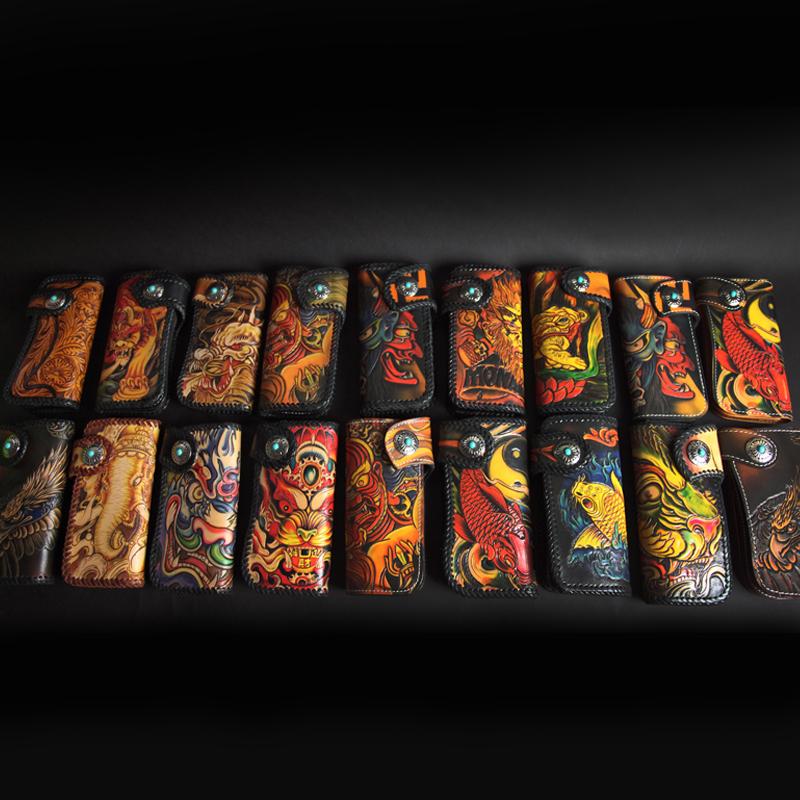 Style: Carved Handmade Leather Mens Long Wallets Card Wallet Clutch Wallet For Men