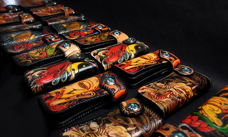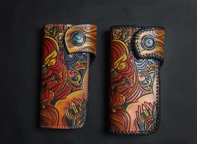 Design: Carved Handmade Leather Mens Long Wallets Card Wallet Clutch Wallet For Men