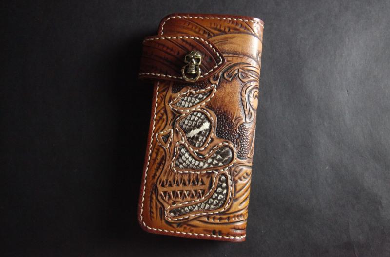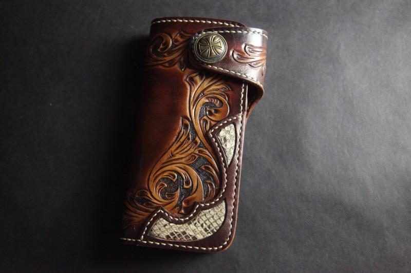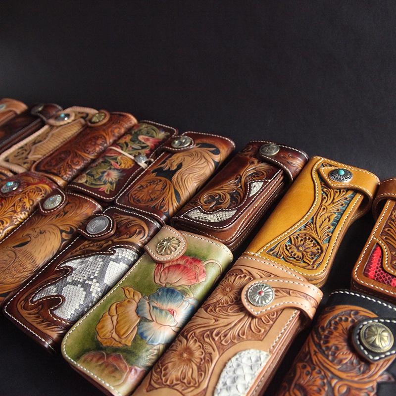 Design: Carved Handmade Leather Mens Long Wallets Card Wallet Clutch Wallets For Men