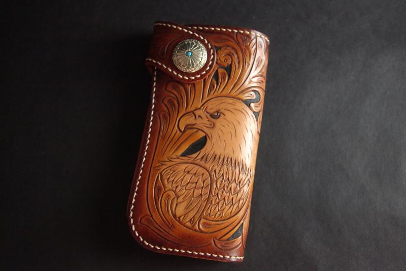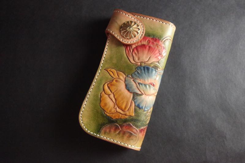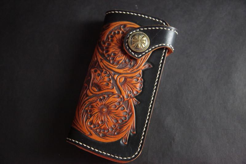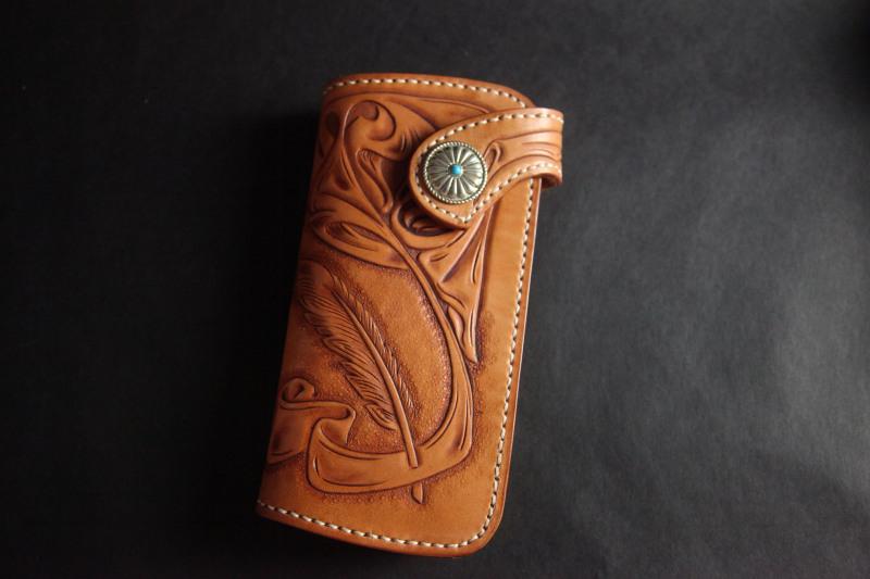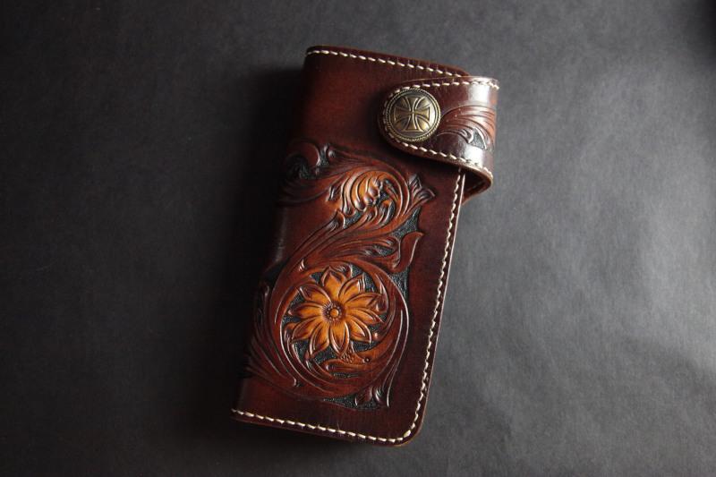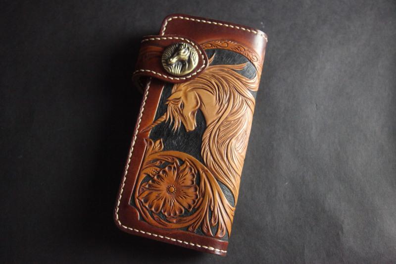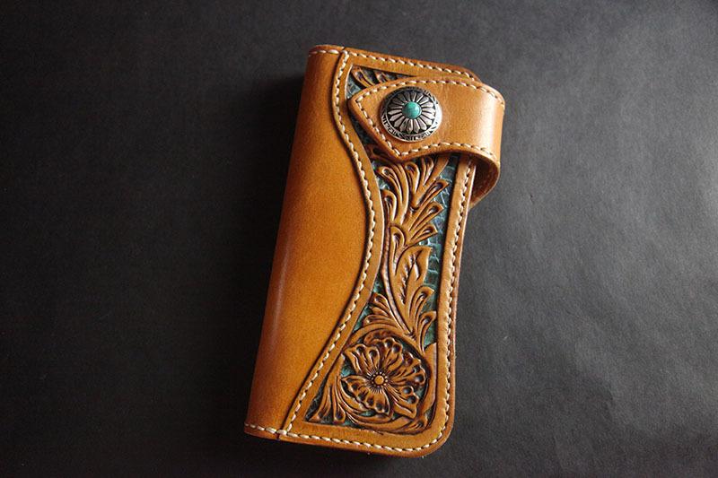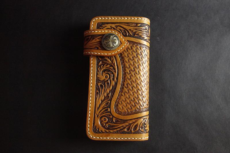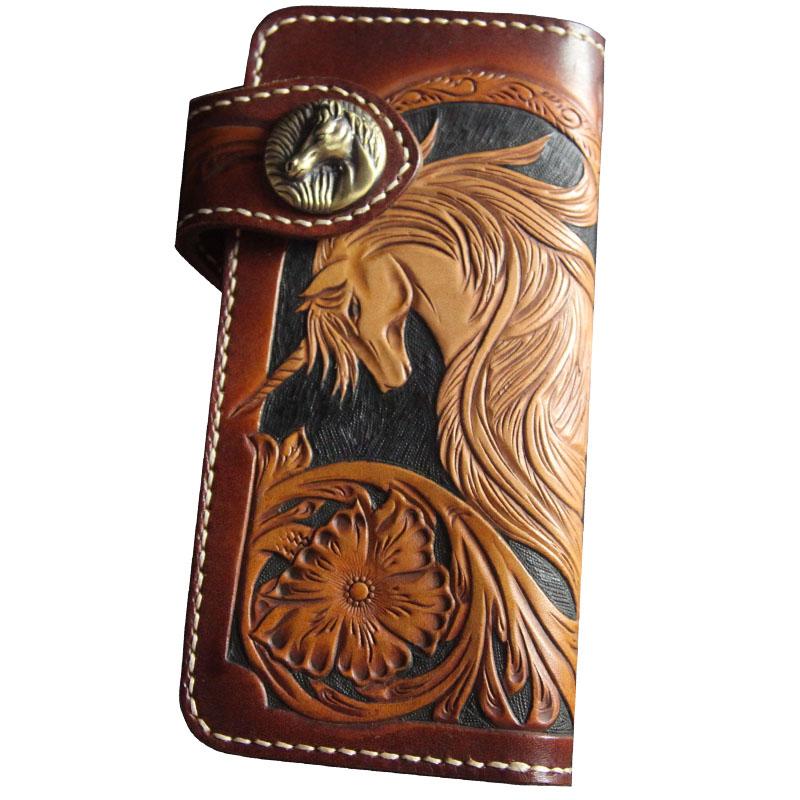 Style: Carved Handmade Leather Mens Long Wallets Card Wallet Clutch Wallets For Men