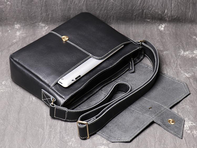 Style: Casual Black LEATHER MENS Ipad Vertical SIDE BAGS COURIER BAG 10 inches MESSENGER BAG FOR MEN