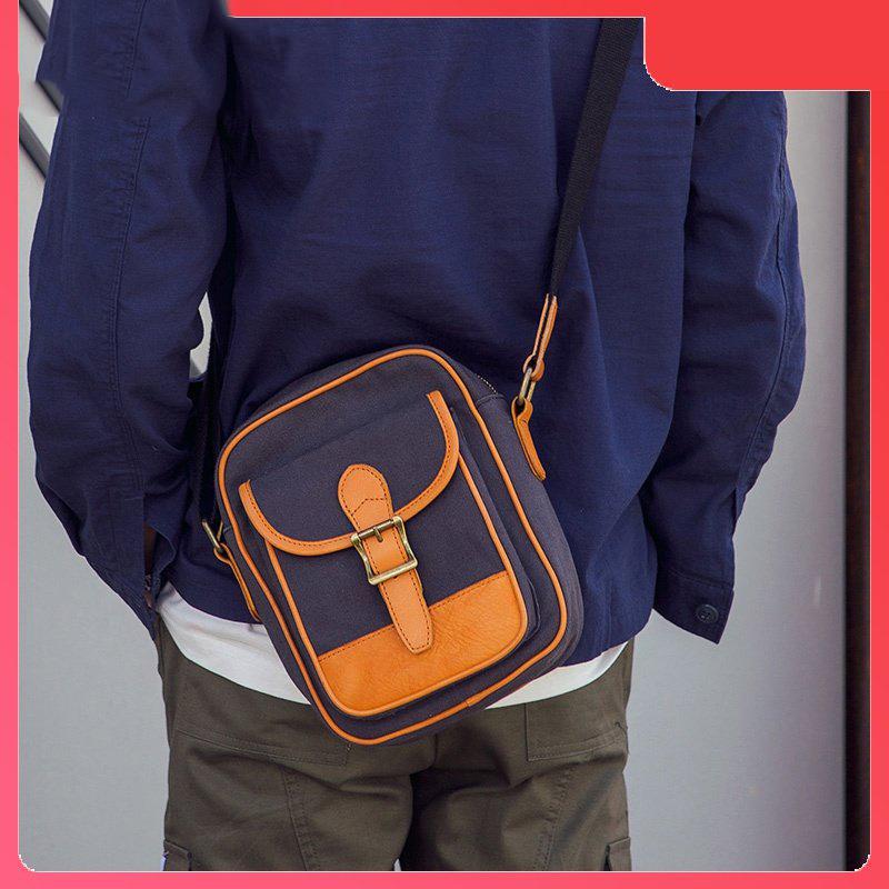 Style: Casual Navy Blue Canvas MENS Vertical SIDE BAG COURIER BAG Vertical MESSENGER BAG FOR MEN
