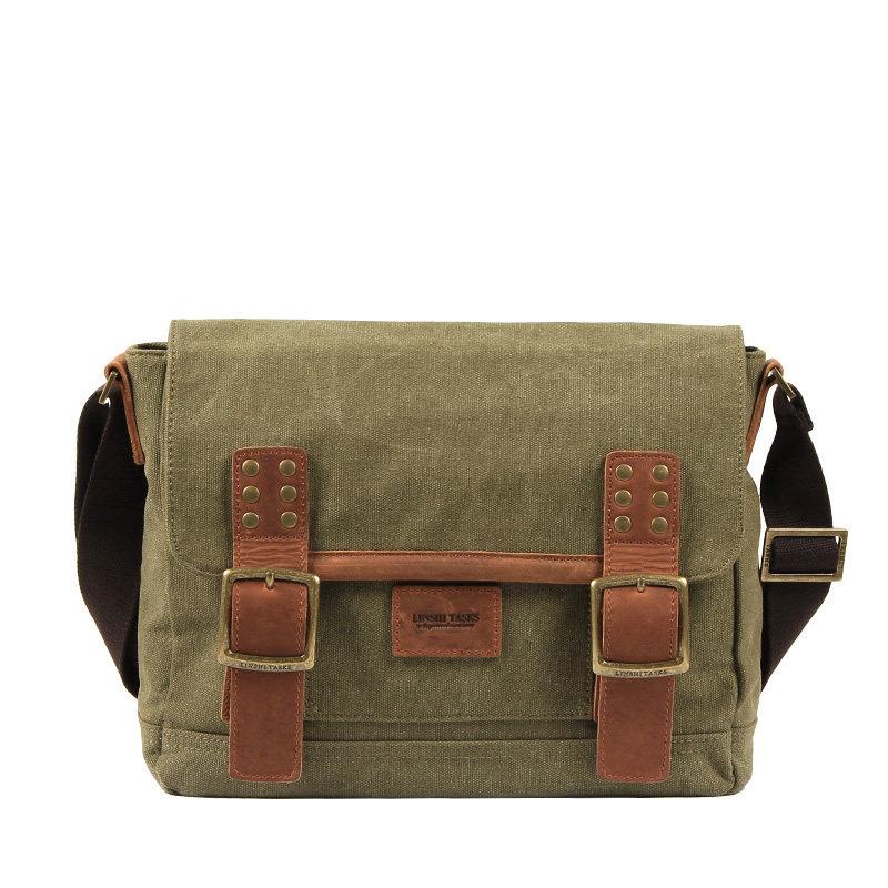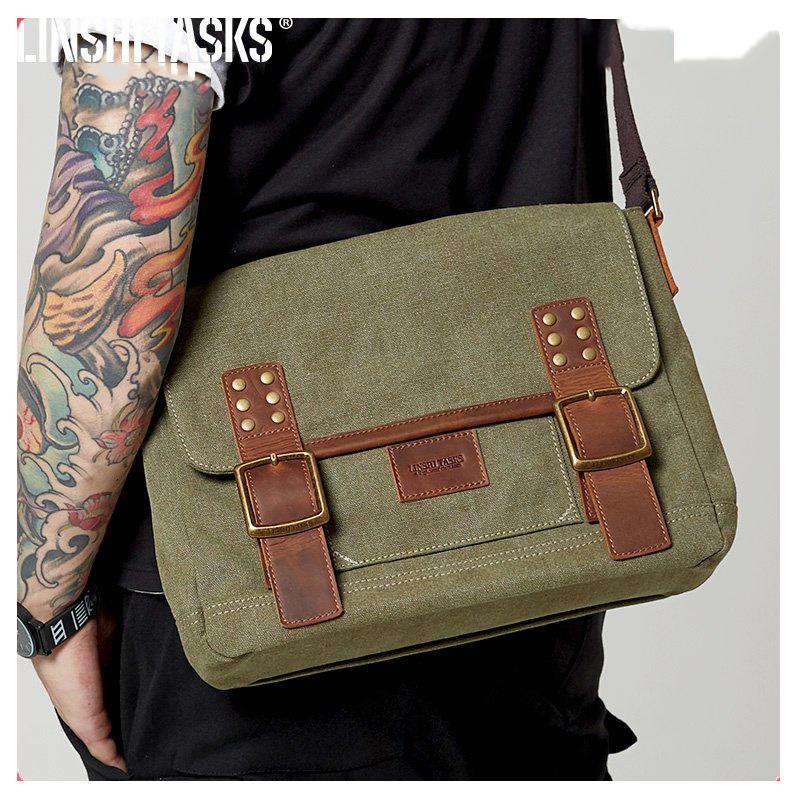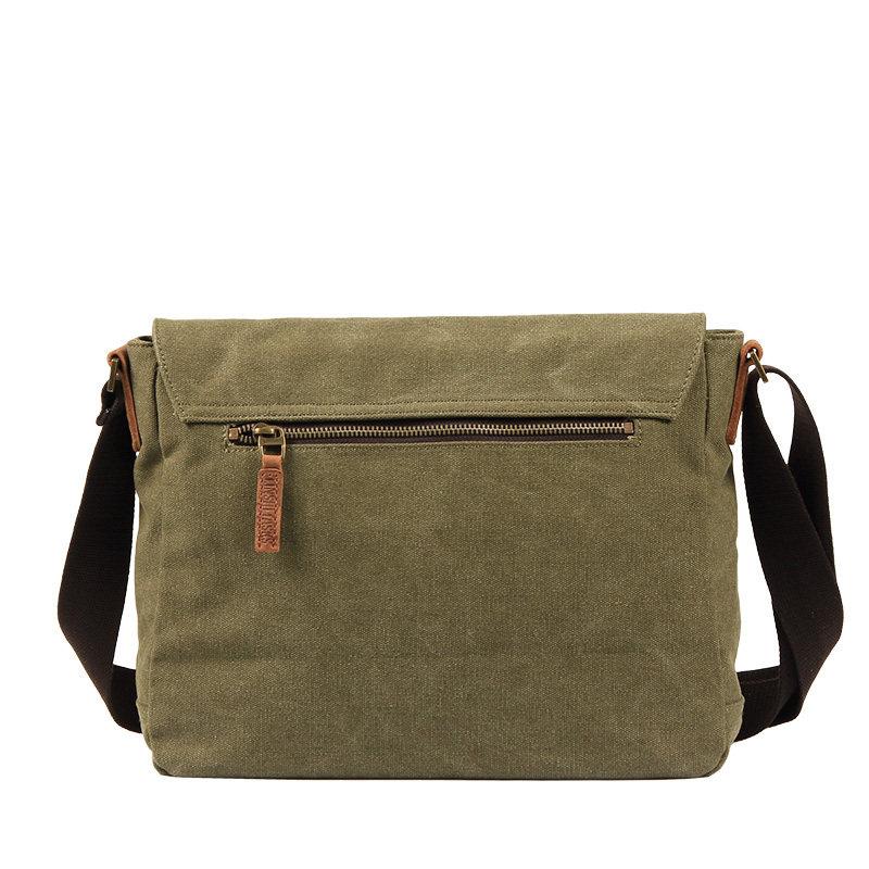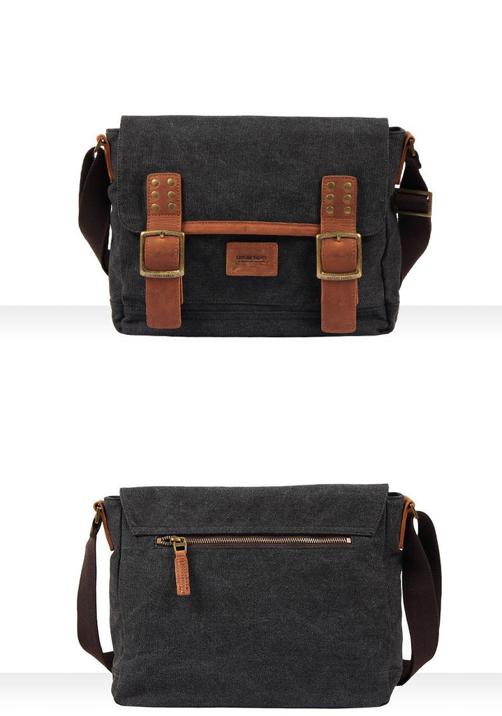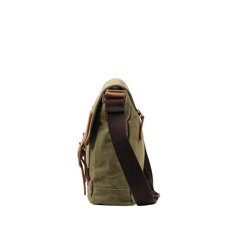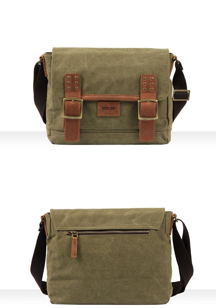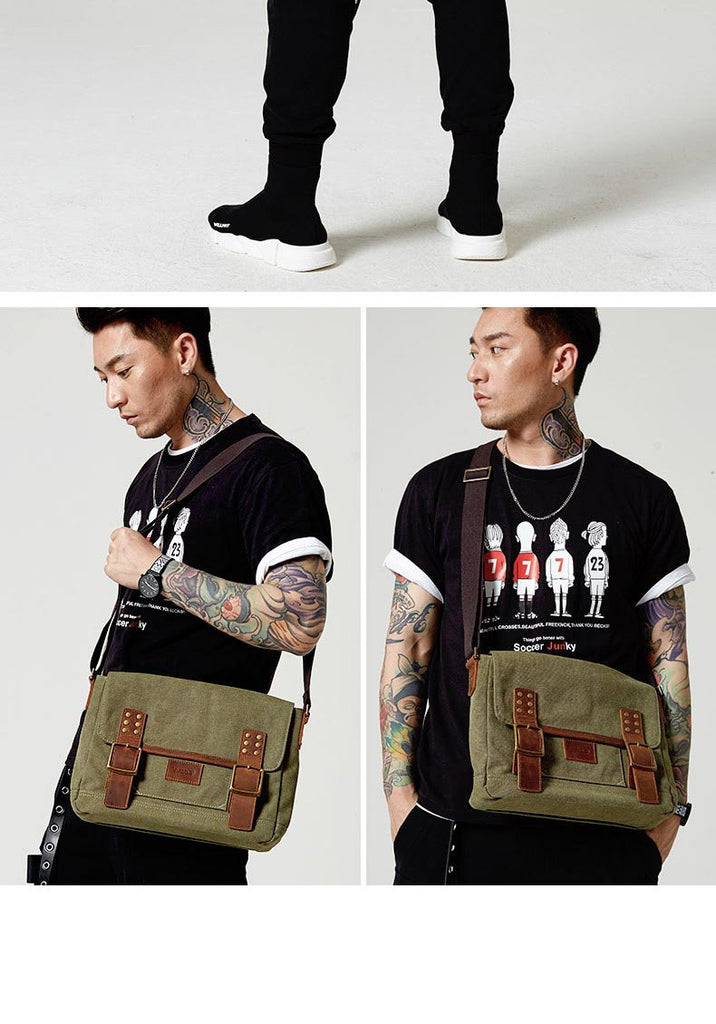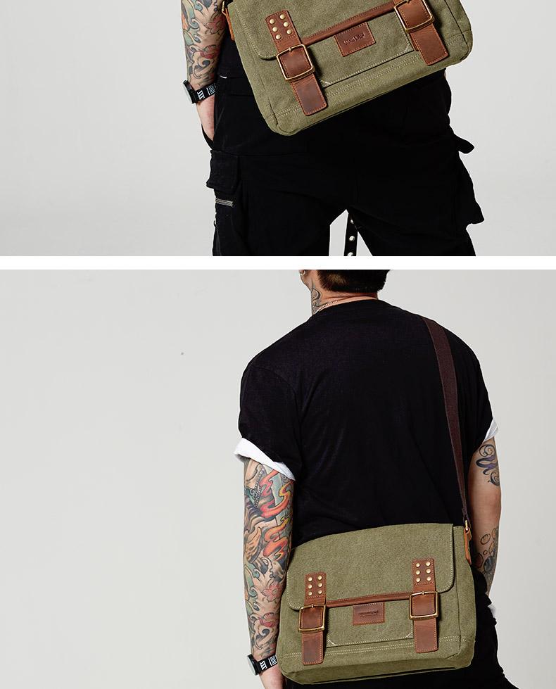 Design: Black Canvas Leather Mens Side Bag Messenger Bags Army Green Canvas Courier Bag for Men