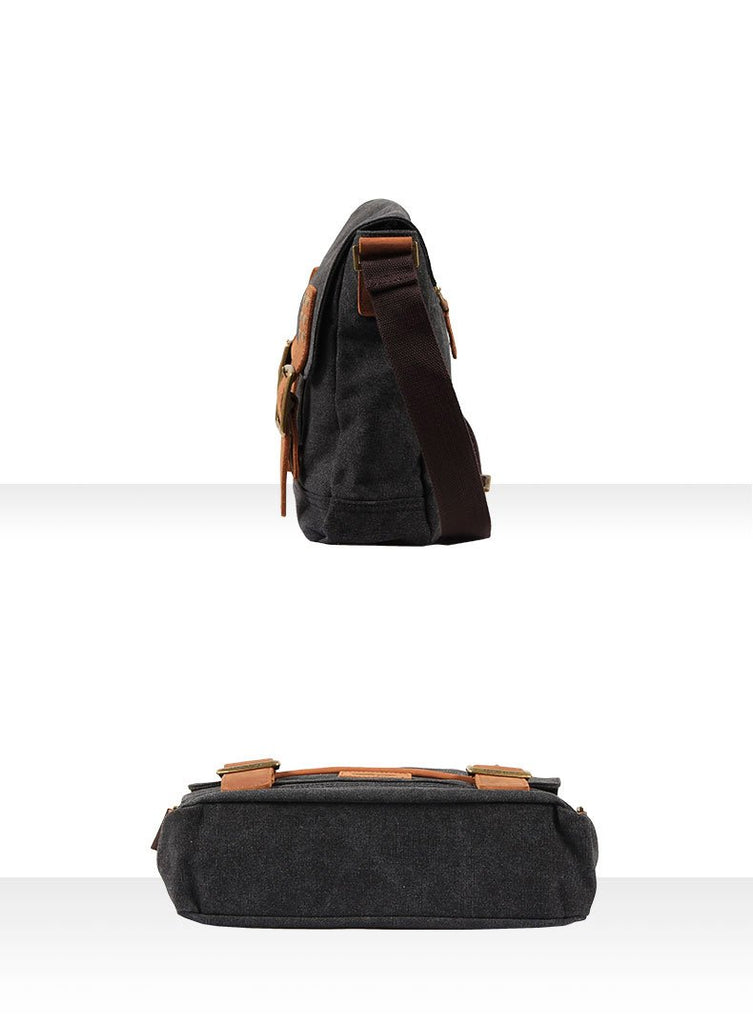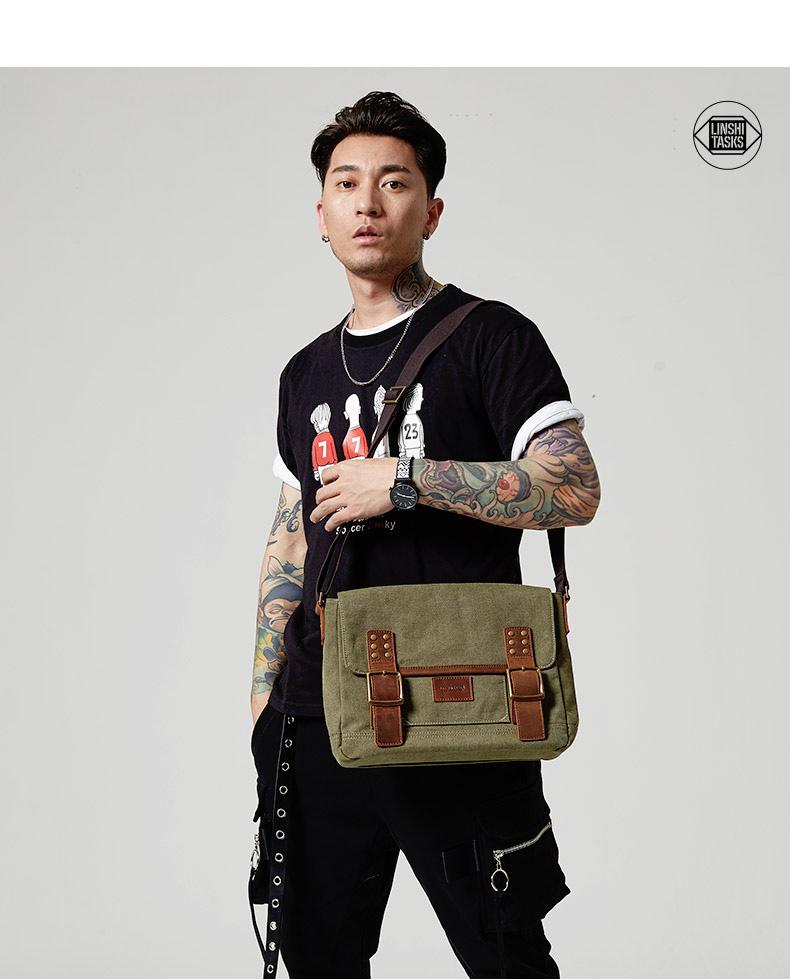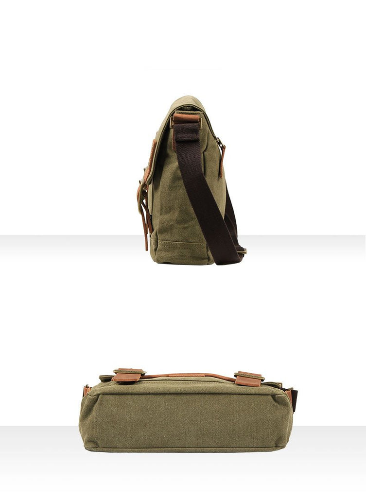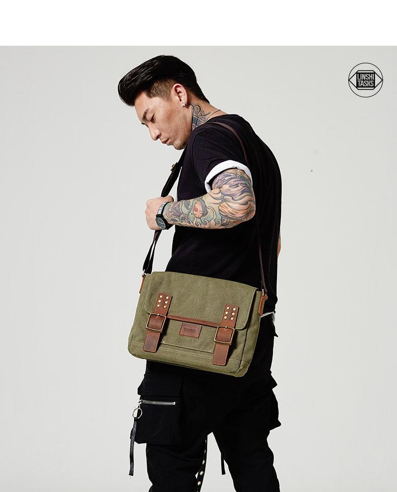 Style: Black Canvas Leather Mens Side Bag Messenger Bags Army Green Canvas Courier Bag for Men