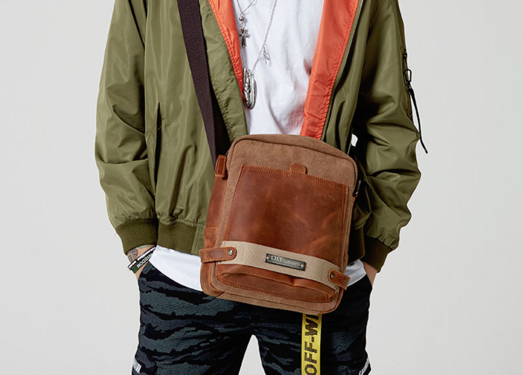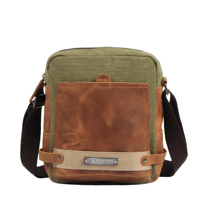 Design: Coffee Canvas Leather Mens Side Bag Messenger Bags Army Green Canvas Courier Bag for Men
