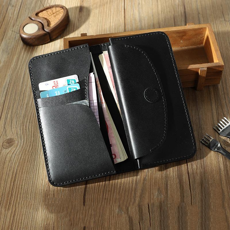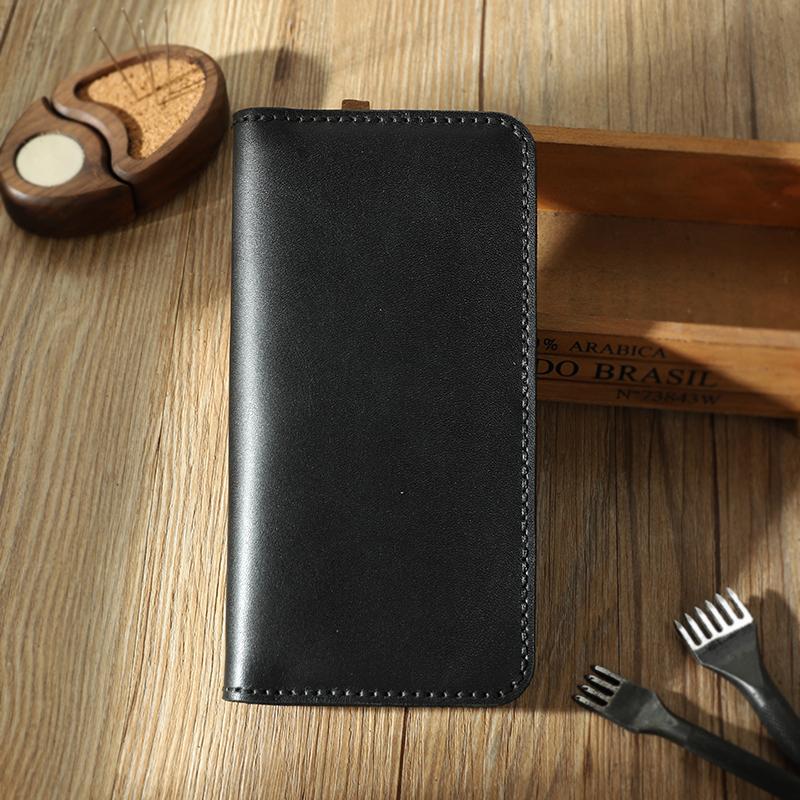 Style: Handmade Coffee Leather Mens Bifold Long Wallets Personalized Coffee Checkbook Leather Wallets for Men