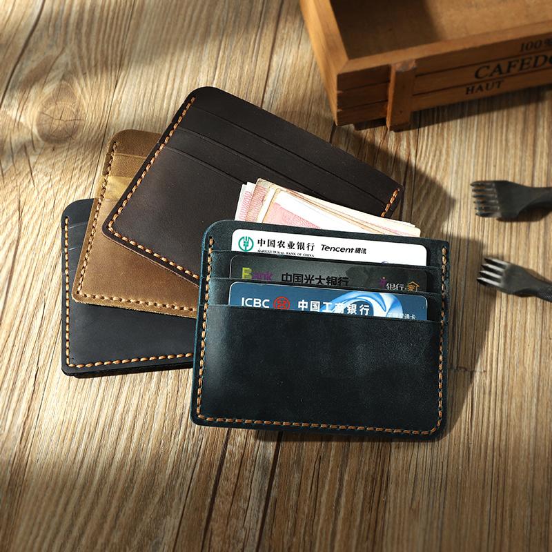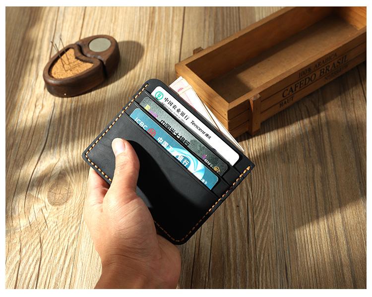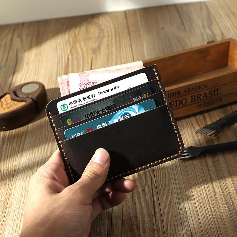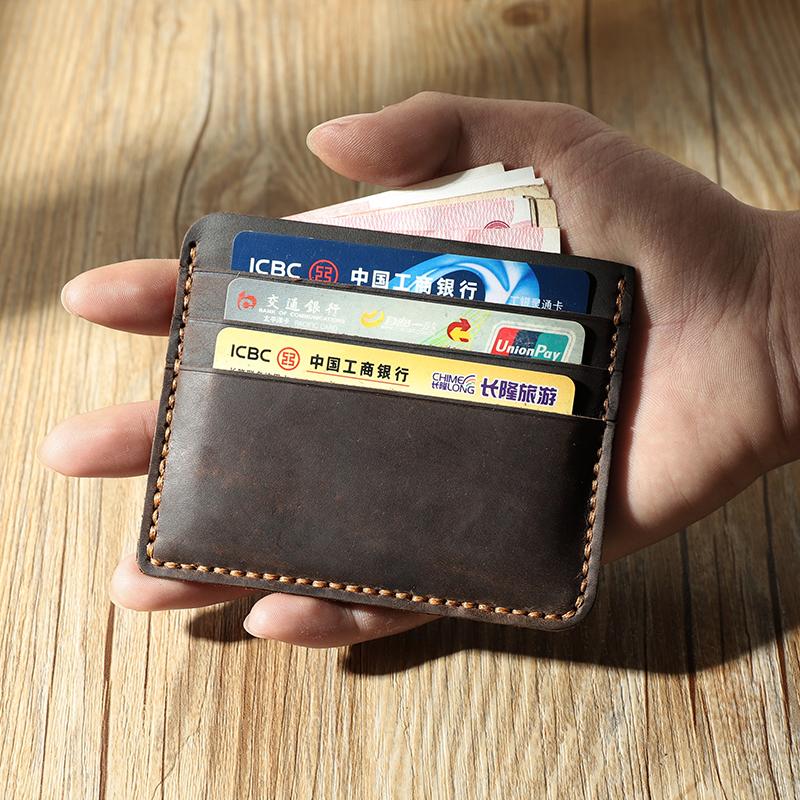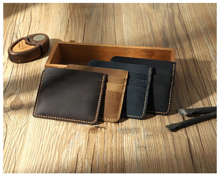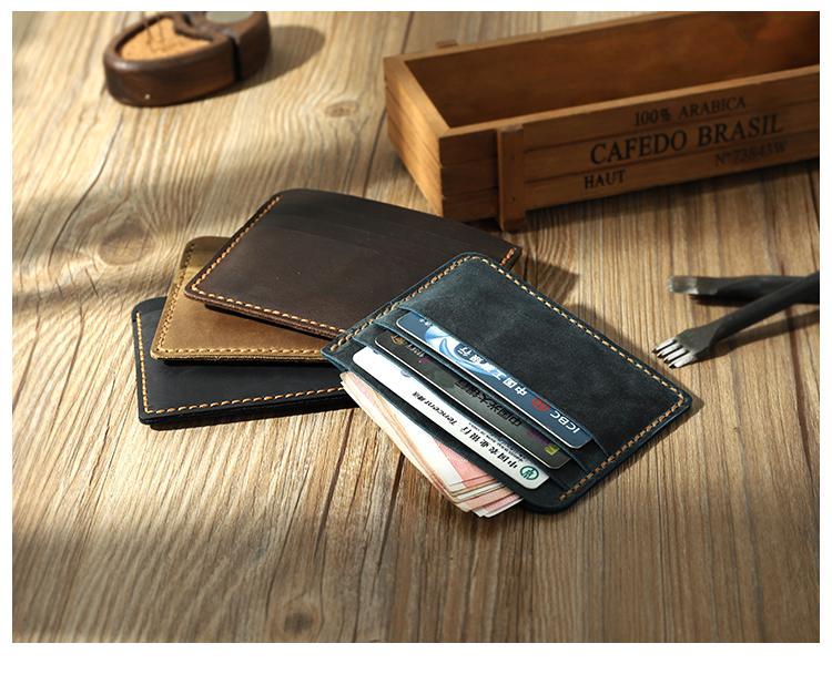 Design: Handmade Coffee Leather Mens Front Pocket Wallets Personalized Slim Card Wallets for Men