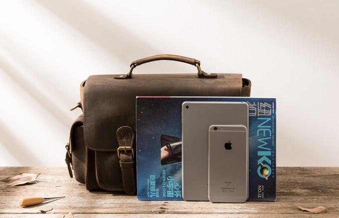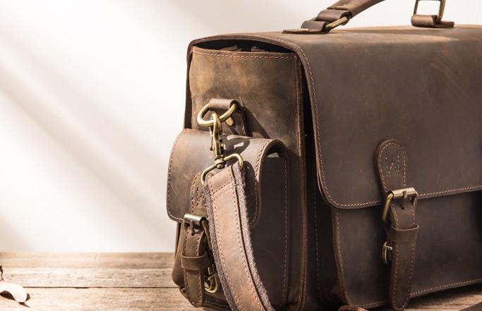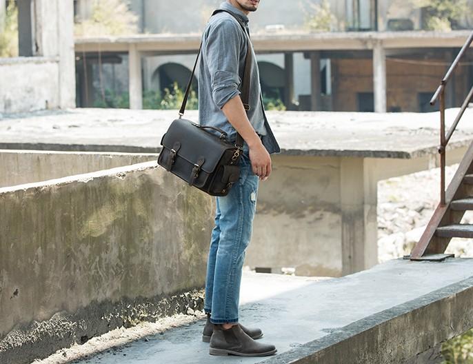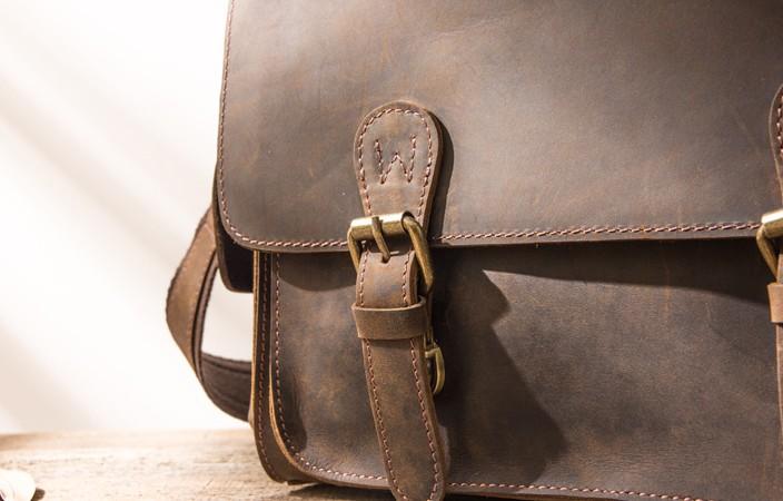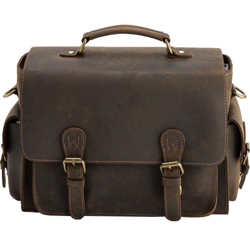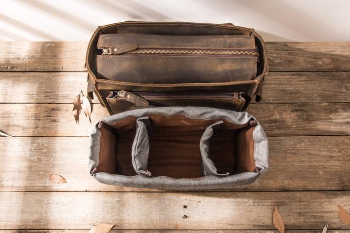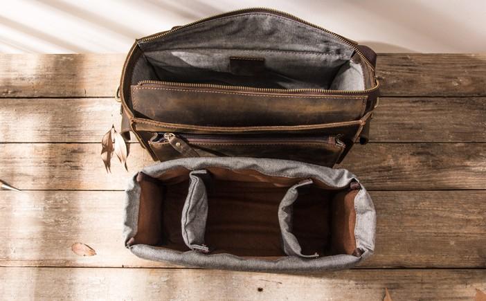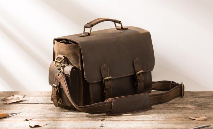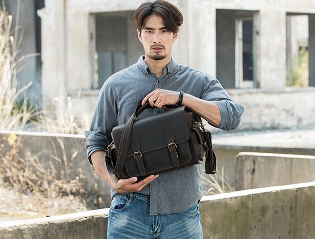 Design: Coffee Vintage Leather Mens Camera Messenger Bag Crossbody Camera Bags for Men