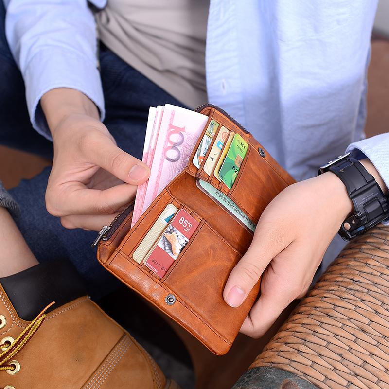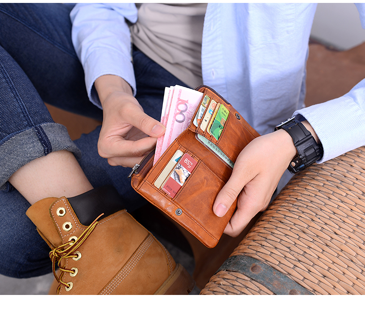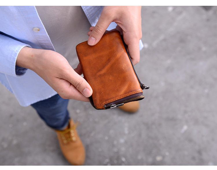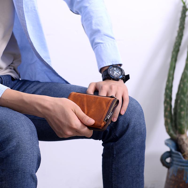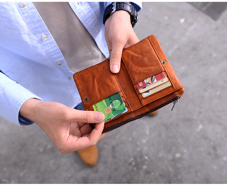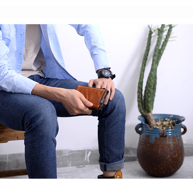 Design: Cool Black Leather Mens Small Card Wallet Change Wallet Light Brown billfold Wallet Coin Purse For Men