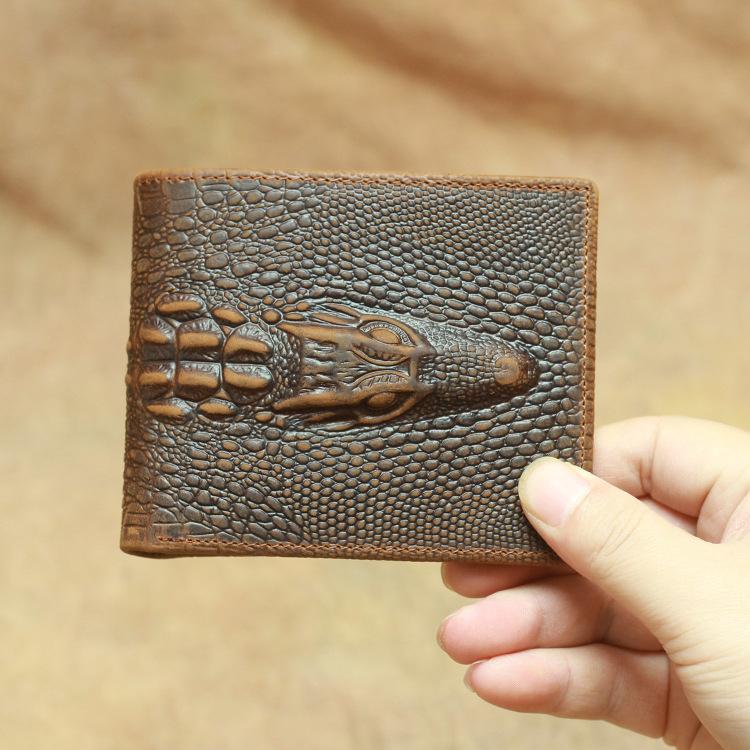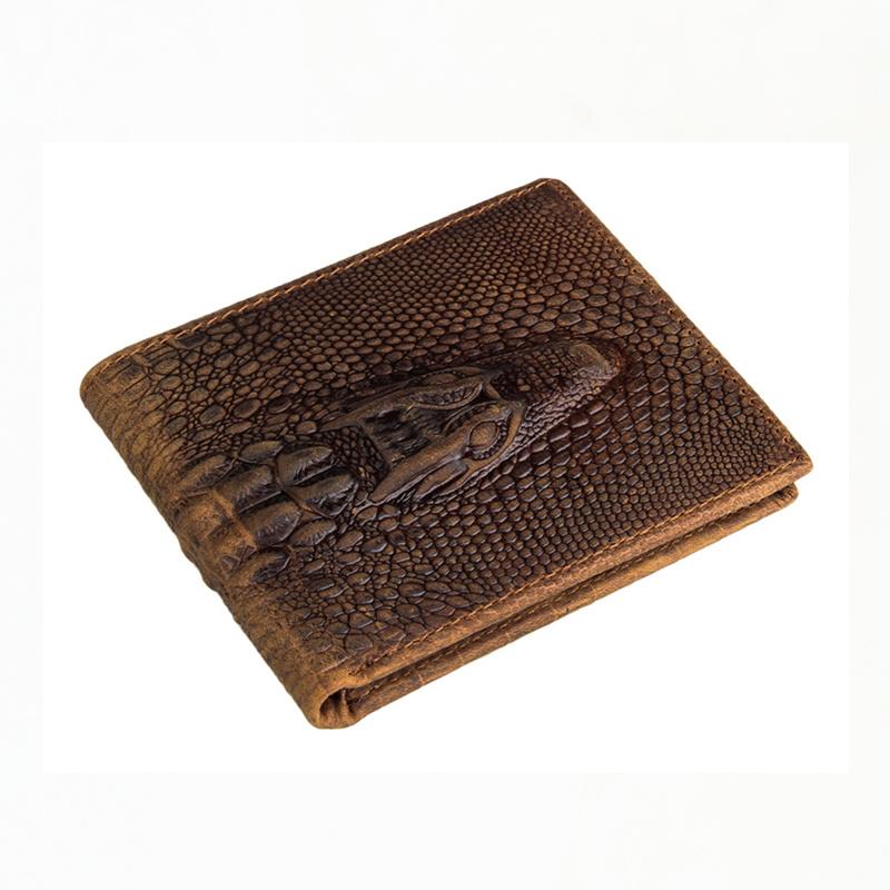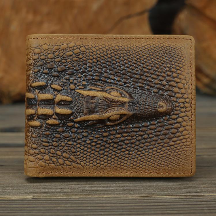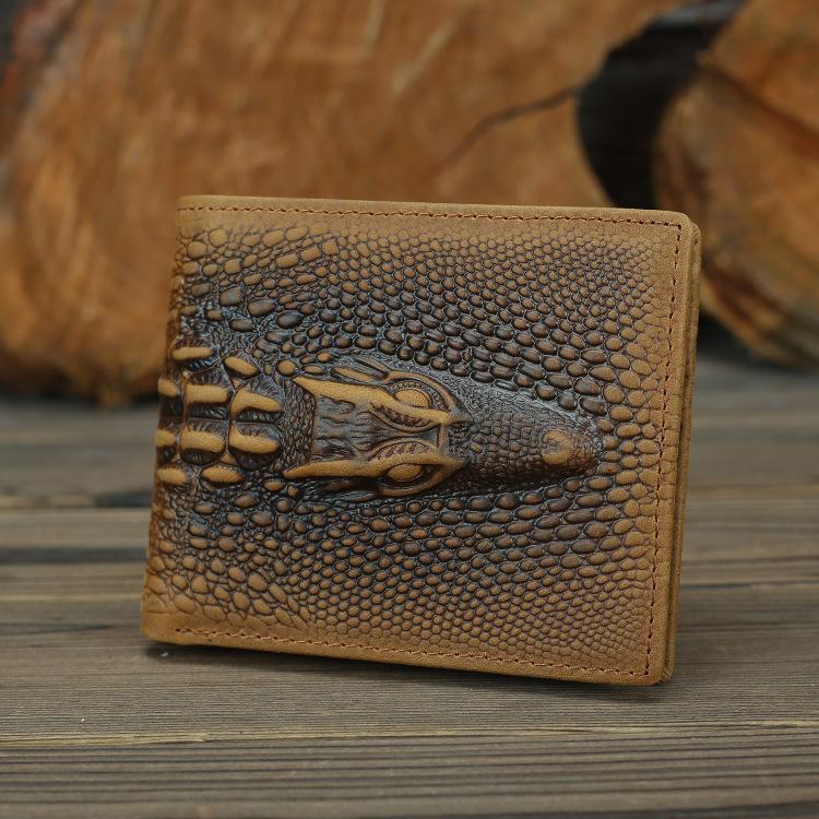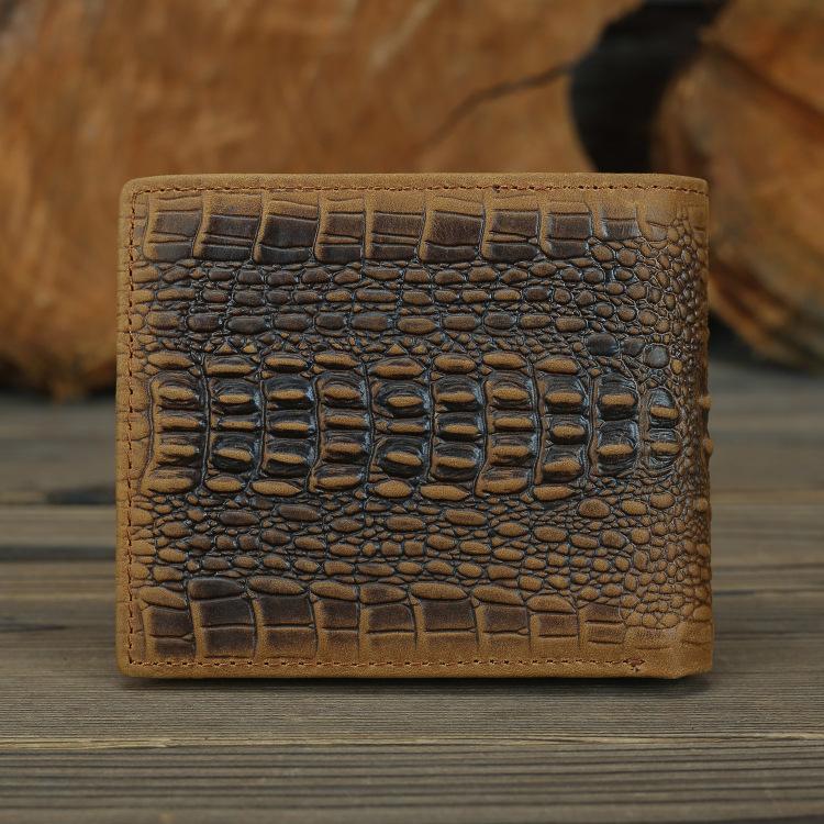 Design: Cool Brown Crocodile Skin Bifold Small Wallet Leather Mens Yellow Brown billfold Small Wallet Card Wallet Coin Purse For Men