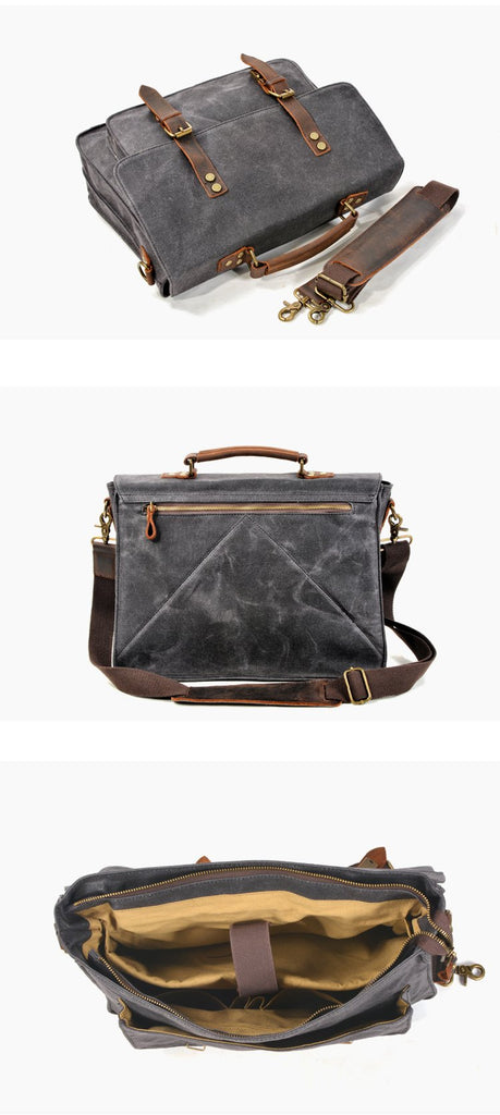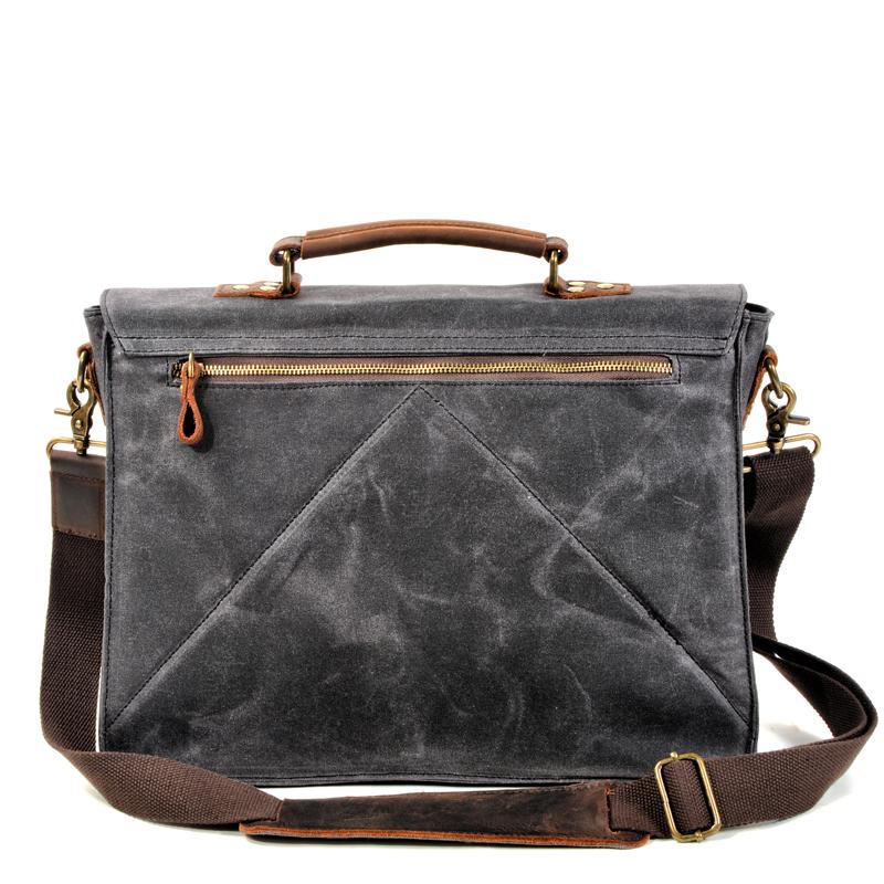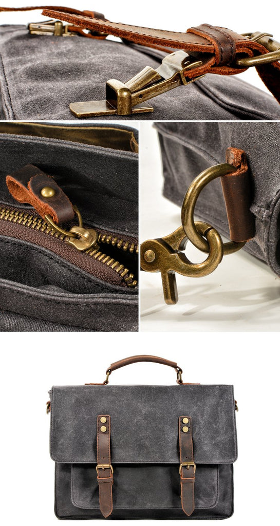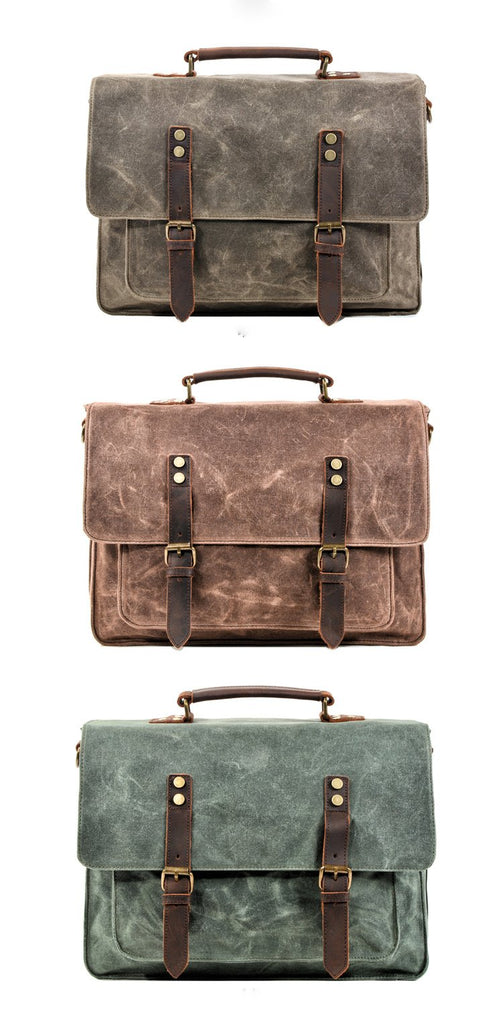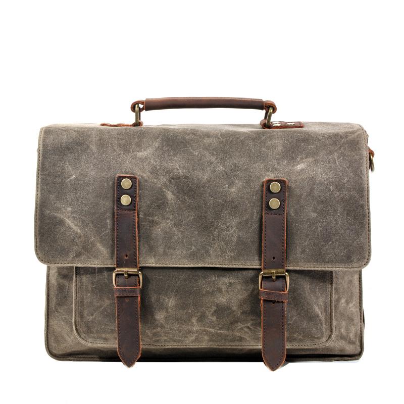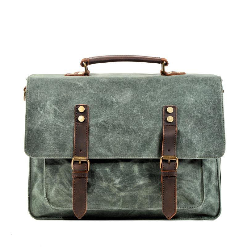 Design: Waxed Canvas Leather Mens Green Casual 14‘’ Briefcase Handbag Messenger Bag Side Bag For Men