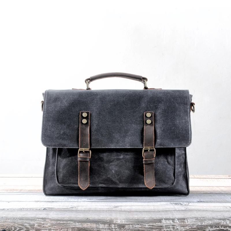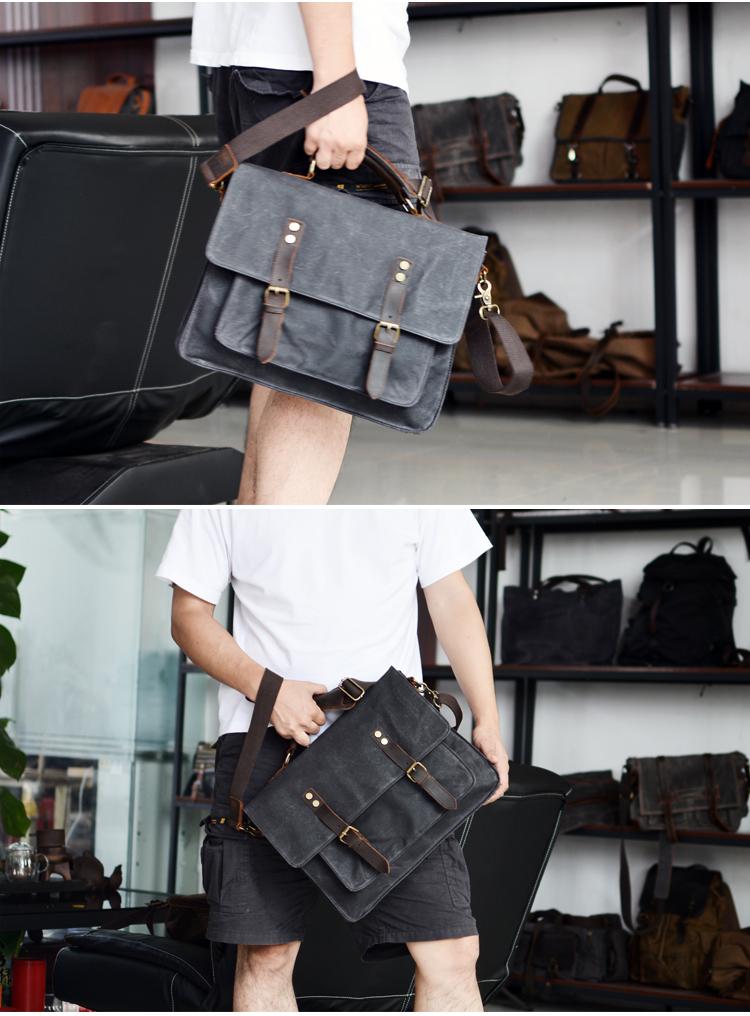 Style: Cool Canvas Leather Mens Casual Briefcase Crossbody Bag Messenger Bag Shoulder Bag For Men