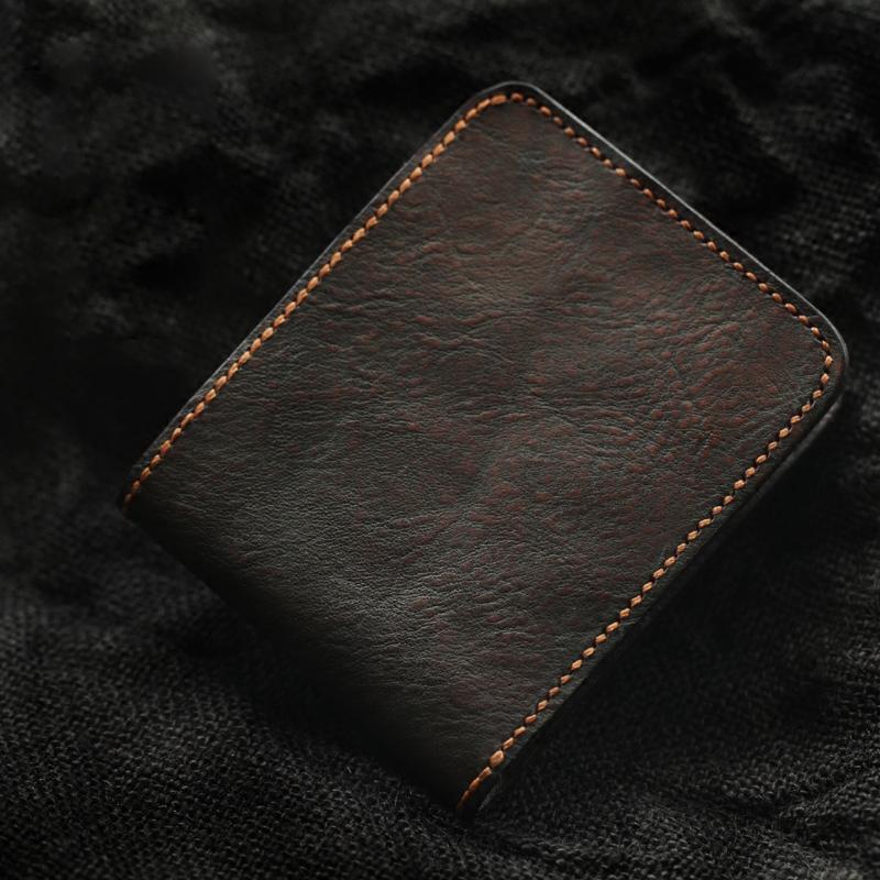 Design: Cool Distressed Brown Leather Mens Horizontal Small Wallet billfold Wallet Bifold Front Pocket Wallet For Men