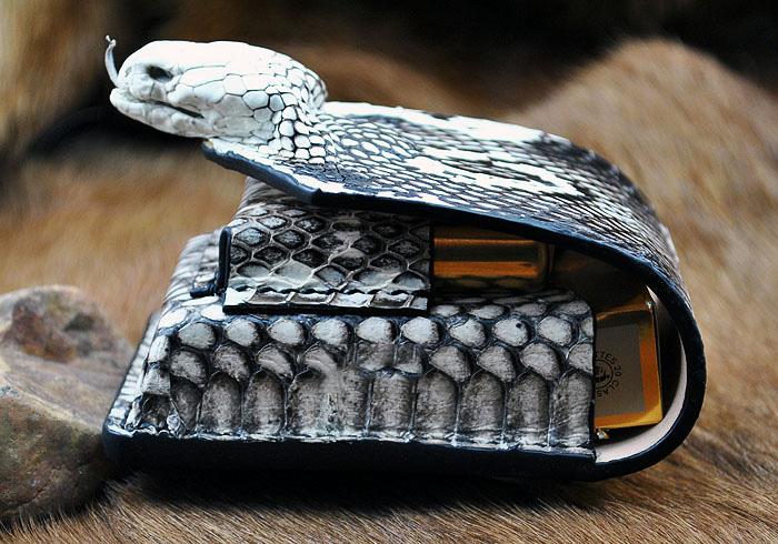 Style: Cool Leather Mens Snake Cigarette Case Cigarette Holder Belt Pouch with Belt Loop for Men
