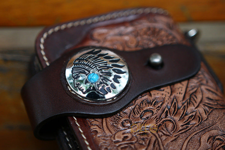 Design: Cool Leather Tooled Dragon&Skull Biker Wallet Handmade Biker Chain Wallet for Men
