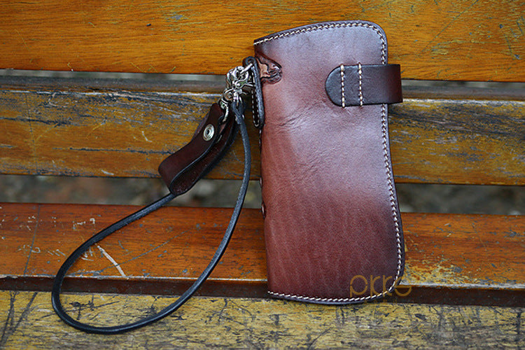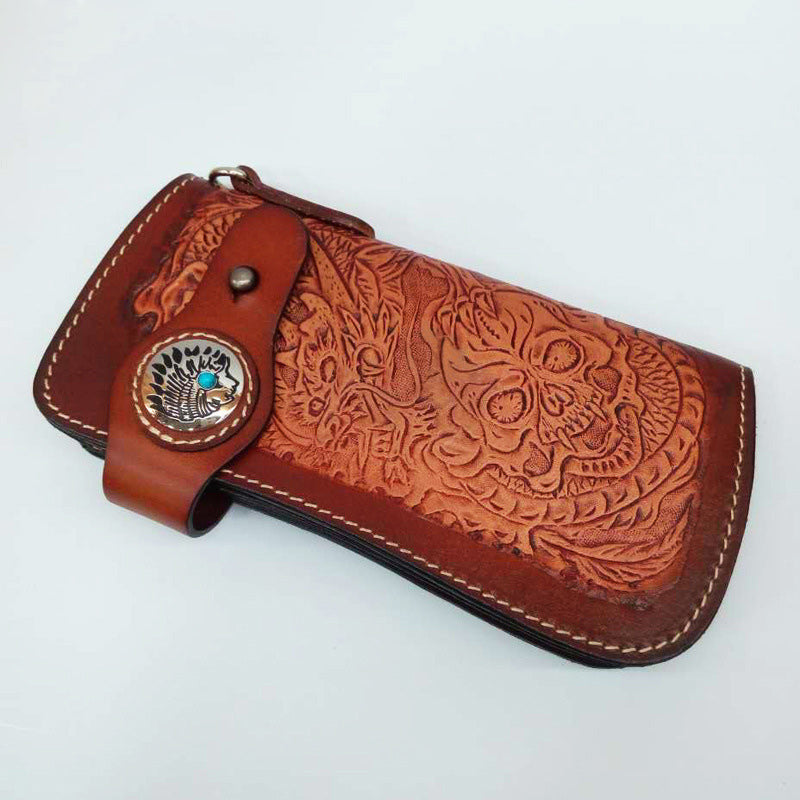 Style: Cool Leather Tooled Dragon&Skull Biker Wallet Handmade Biker Chain Wallet for Men
