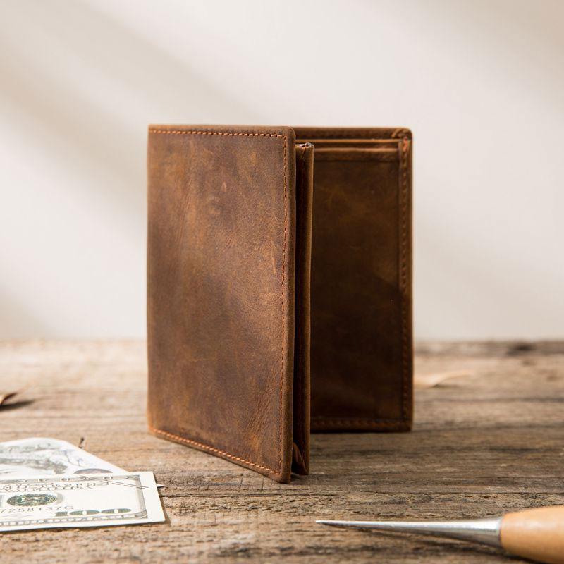 Design: Cool Leather Vintage Mens Small Wallets Zipper billfold Wallets for Men