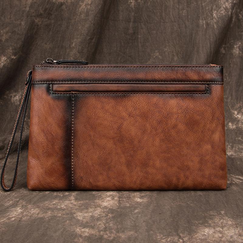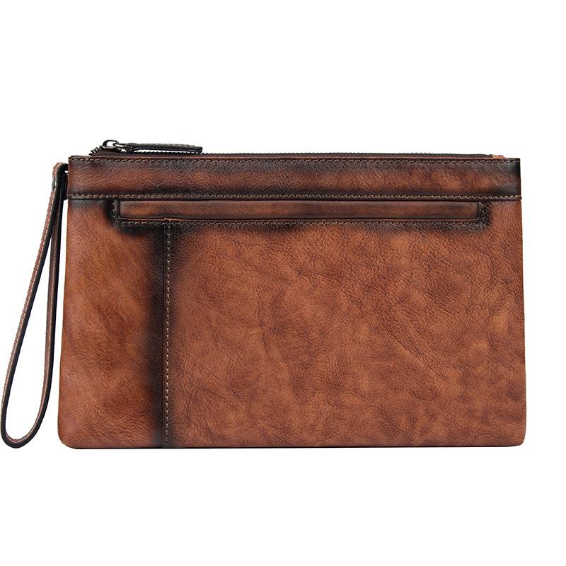 Style: COOL MEN LEATHER Brown Wristlet Bag LONG CLUTCH WALLETS ZIPPER VINTAGE Dark Brown Envelope Bag FOR MEN