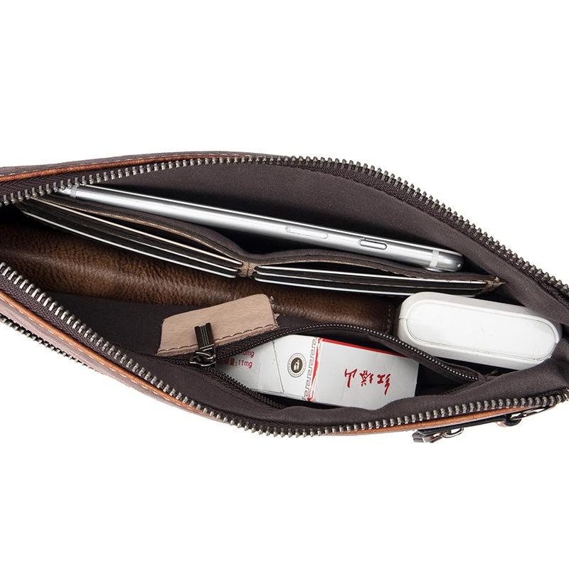 Design: COOL MEN LEATHER Brown Wristlet Bag LONG CLUTCH WALLETS ZIPPER VINTAGE Dark Brown Envelope Bag FOR MEN