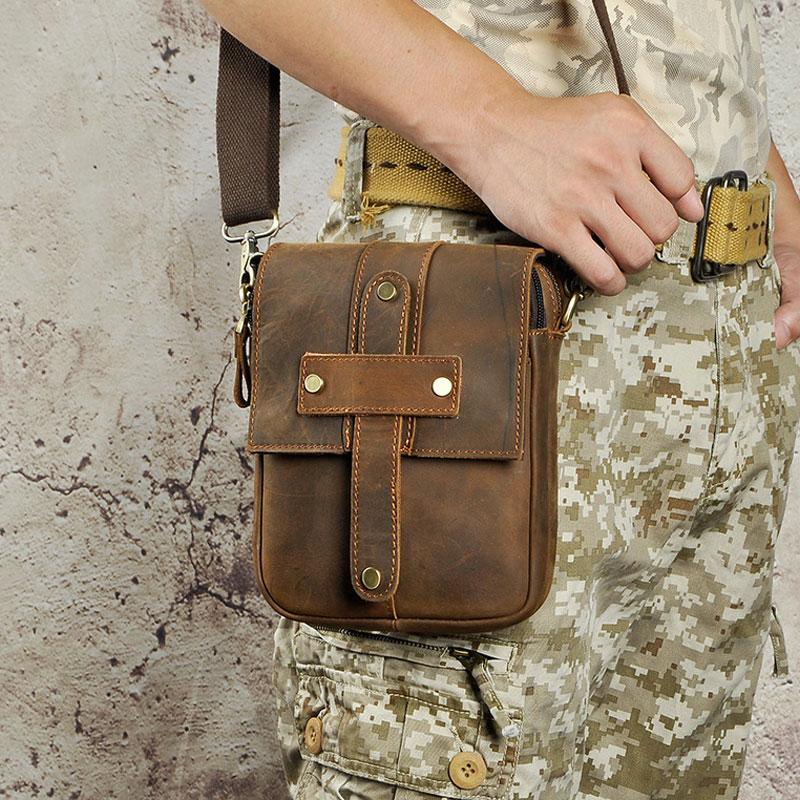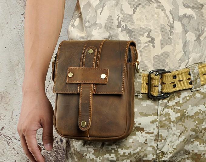 Design: Cool Mens Leather Side Bag Belt Pouch Holster Belt Case Waist Pouch for Men