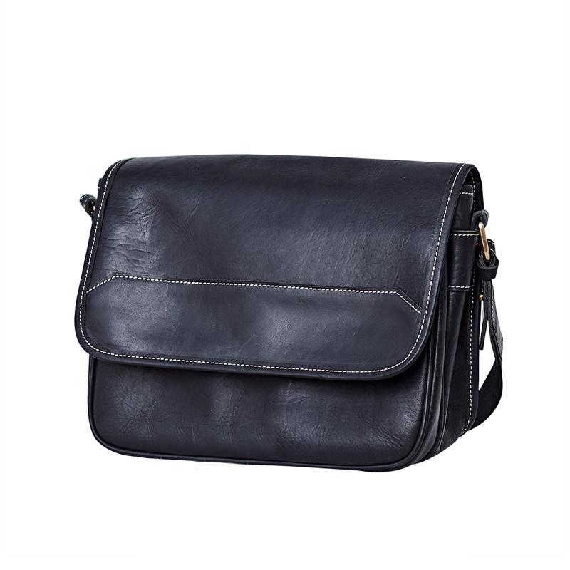 Design: Copy of Casual Black Leather Mens Briefcase 12 inches Messenger Bag Horizontal Shoulder Bag For Men