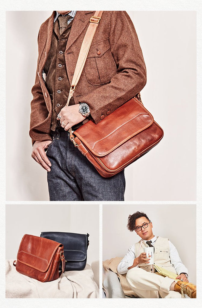 Style: Copy of Casual Black Leather Mens Briefcase 12 inches Messenger Bag Horizontal Shoulder Bag For Men