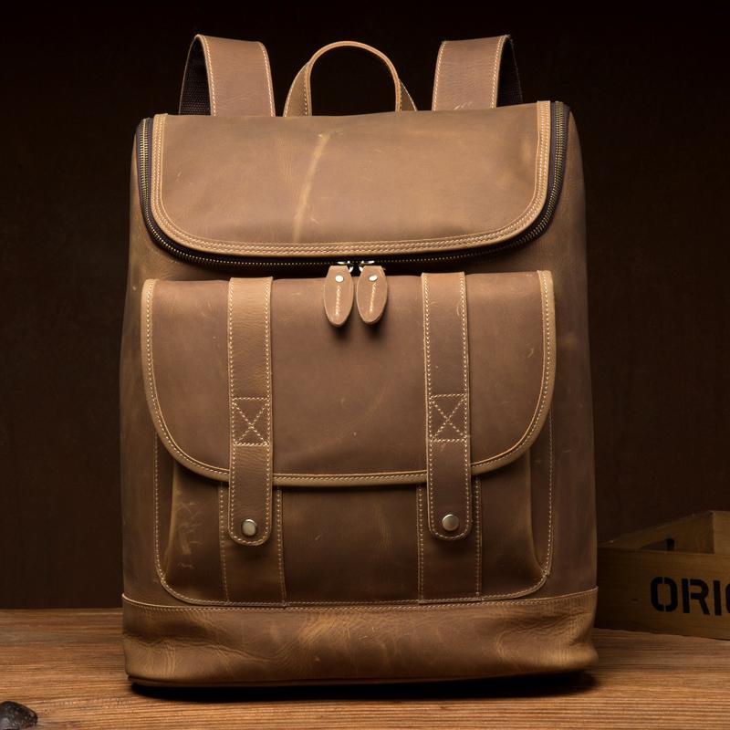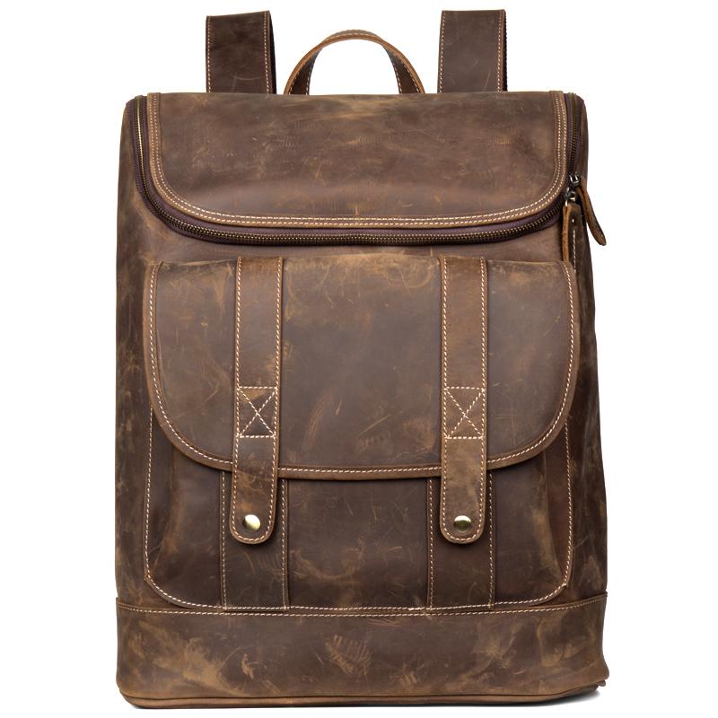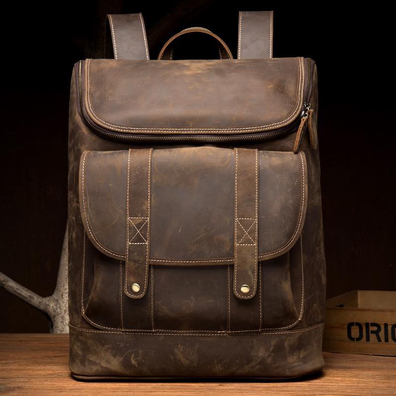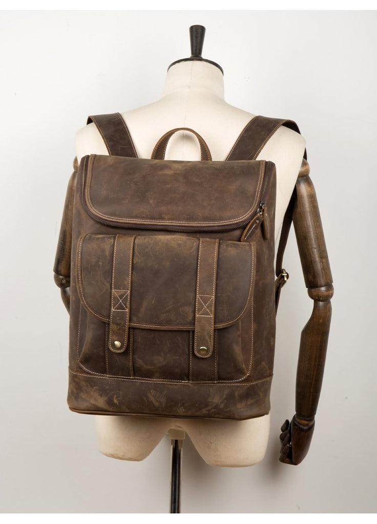 Style: Dark Brown Casual Mens Leather 15-inch Computer Backpack Brown Travel Backpack School Backpacks for men