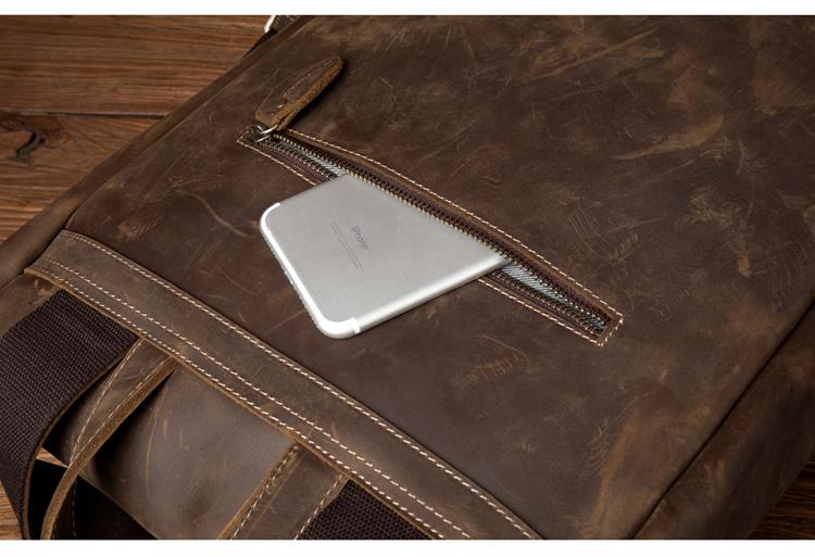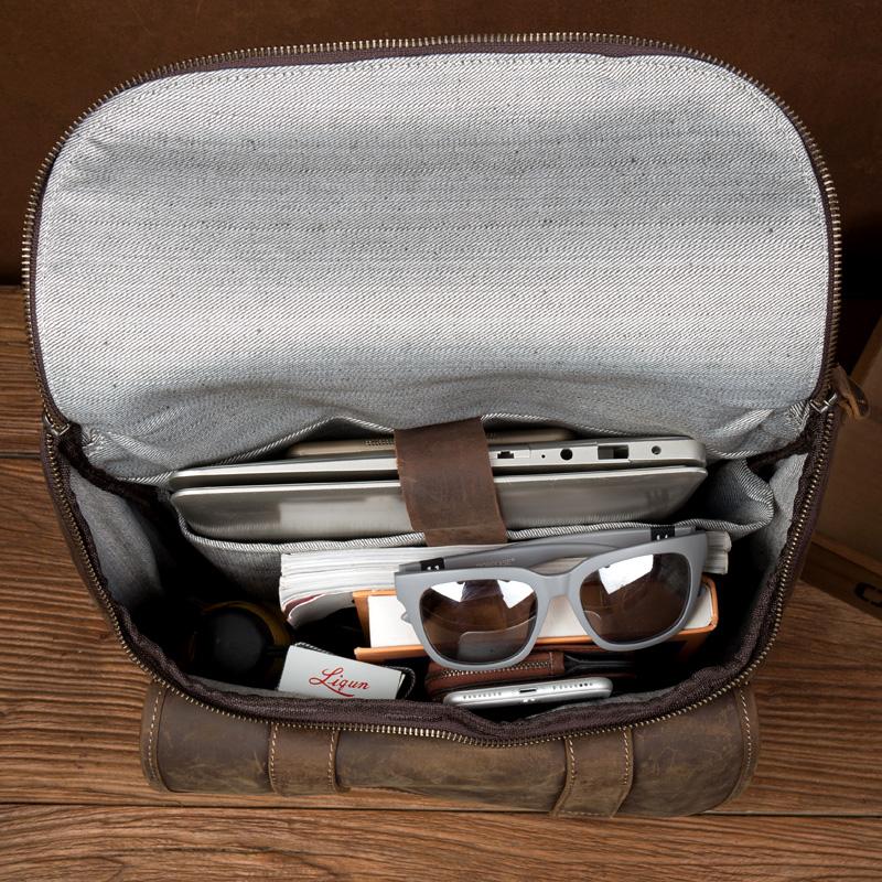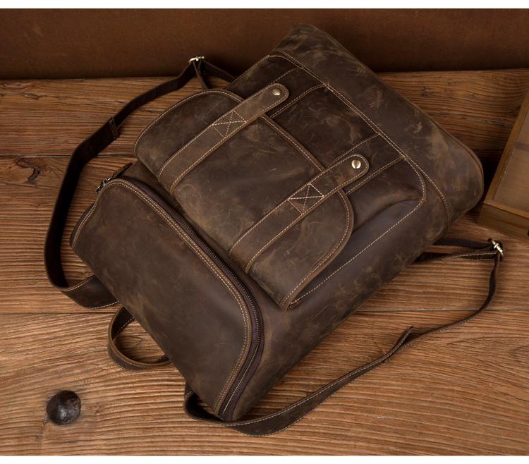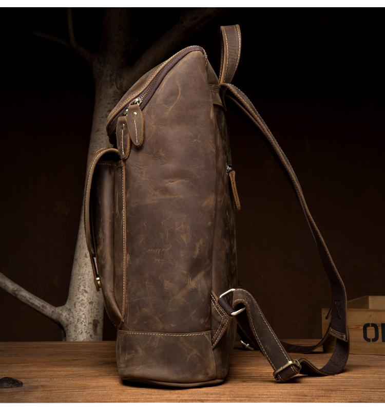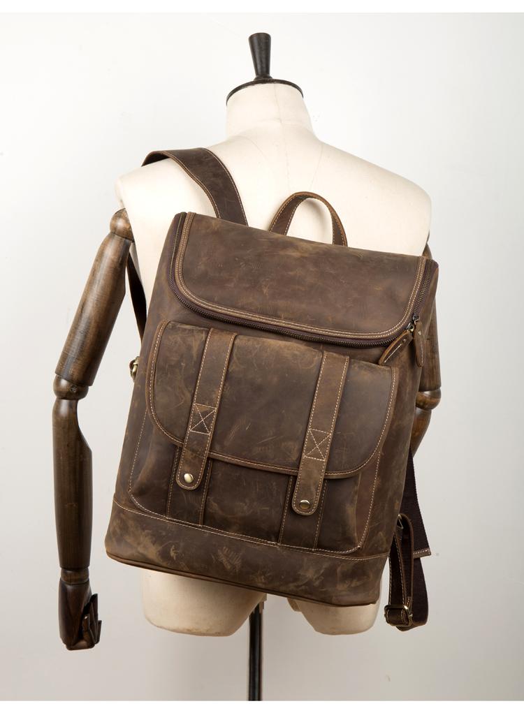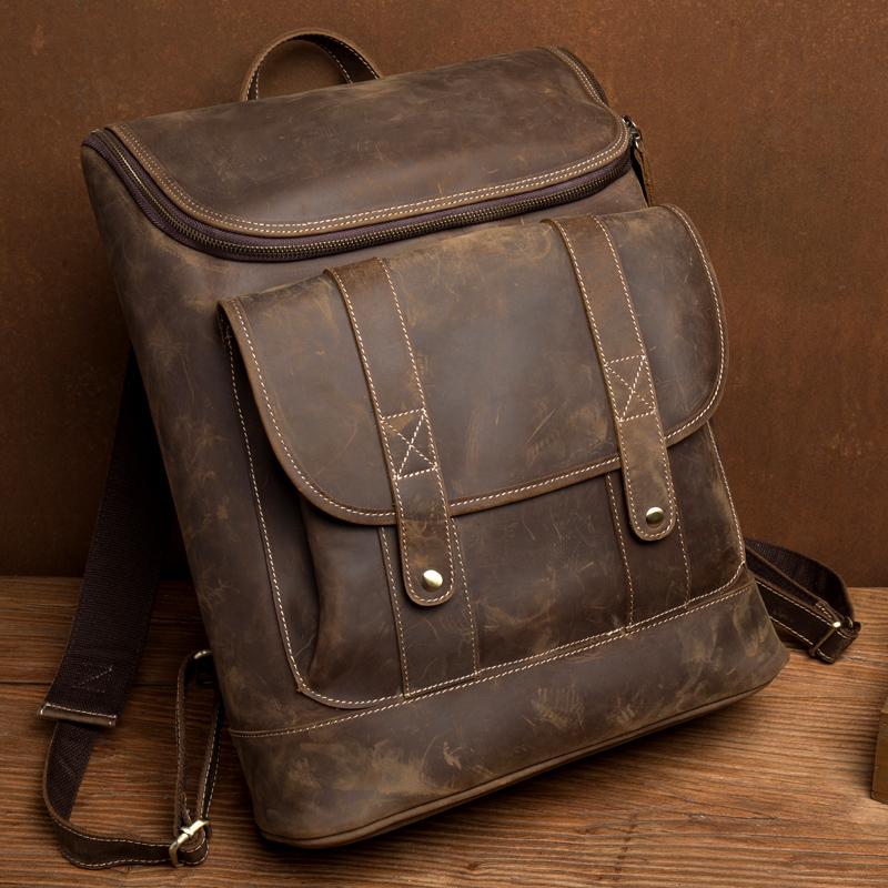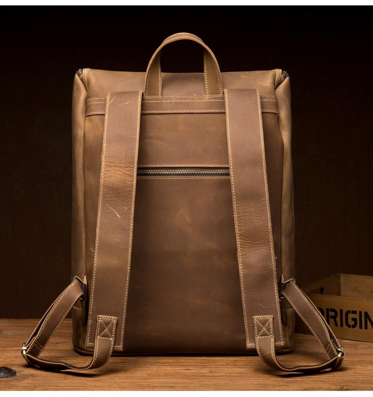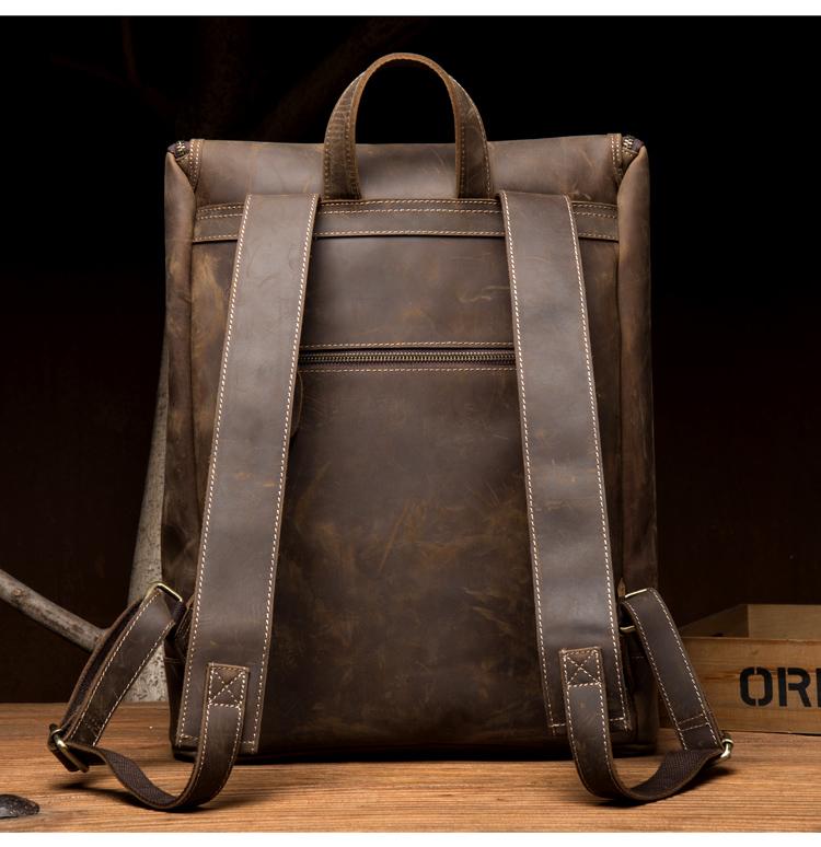 Design: Dark Brown Casual Mens Leather 15-inch Computer Backpack Brown Travel Backpack School Backpacks for men