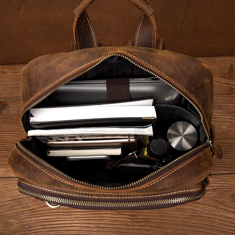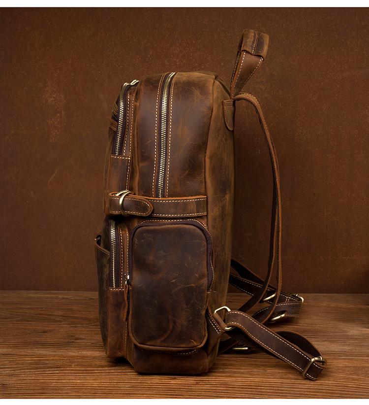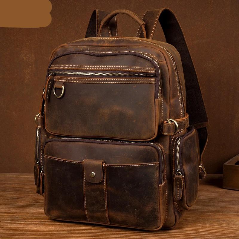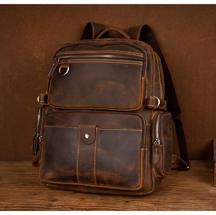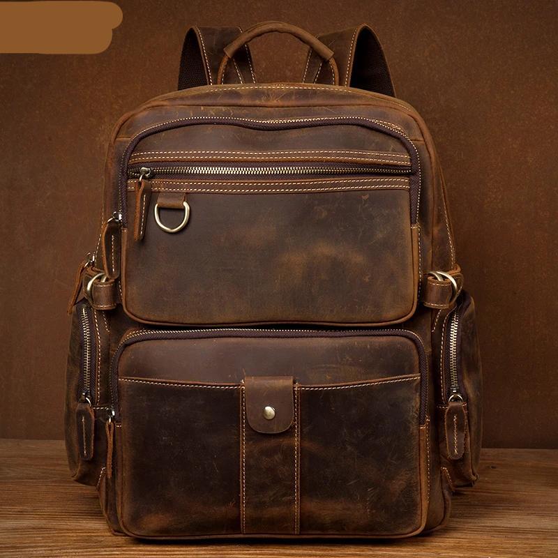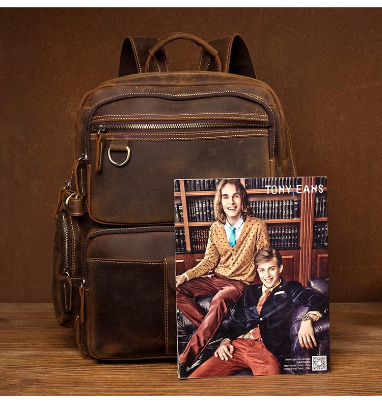 Style: Dark Brown Fashion Mens Leather 15-inch Computer Backpacks Travel Backpacks School Backpacks for men