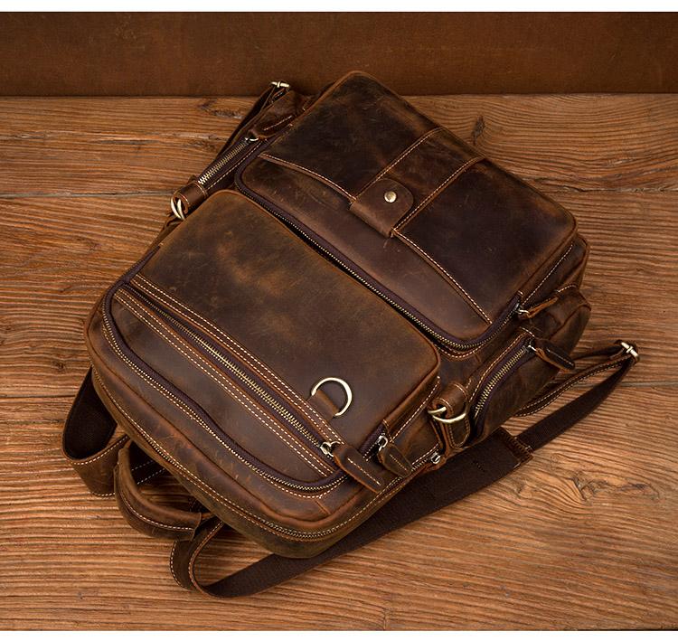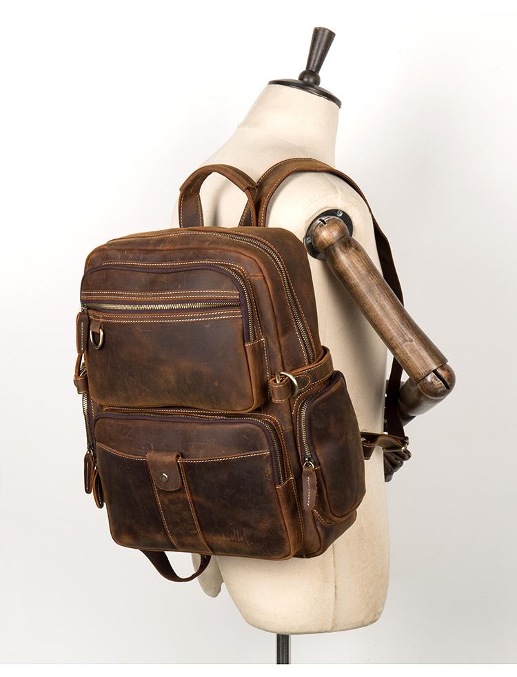 Design: Dark Brown Fashion Mens Leather 15-inch Computer Backpacks Travel Backpacks School Backpacks for men