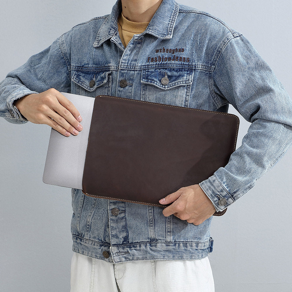 Leather Laptop Case 14 Inch | Minimalist Crazy Horse Leather Sleeve