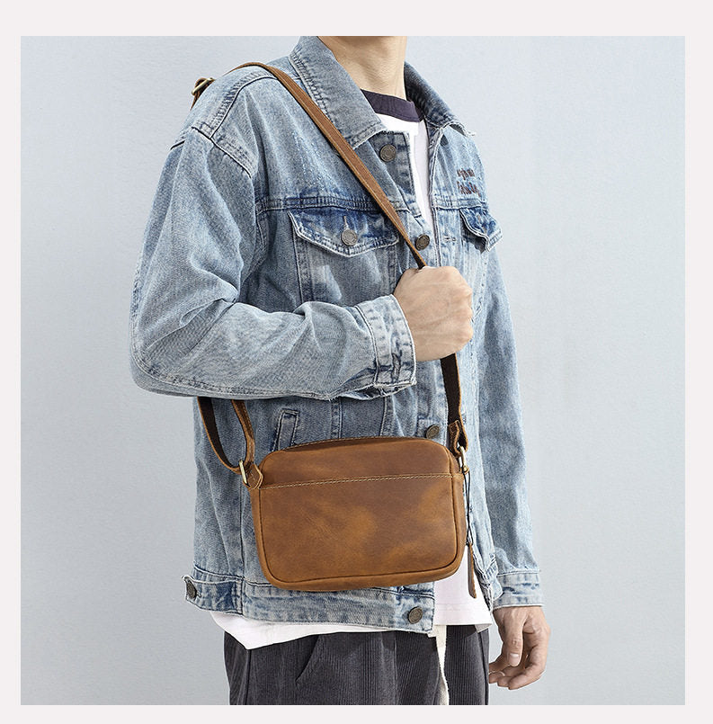 Mens Small Leather Crossbody Bag | Italian-Inspired Compact Daily Bag