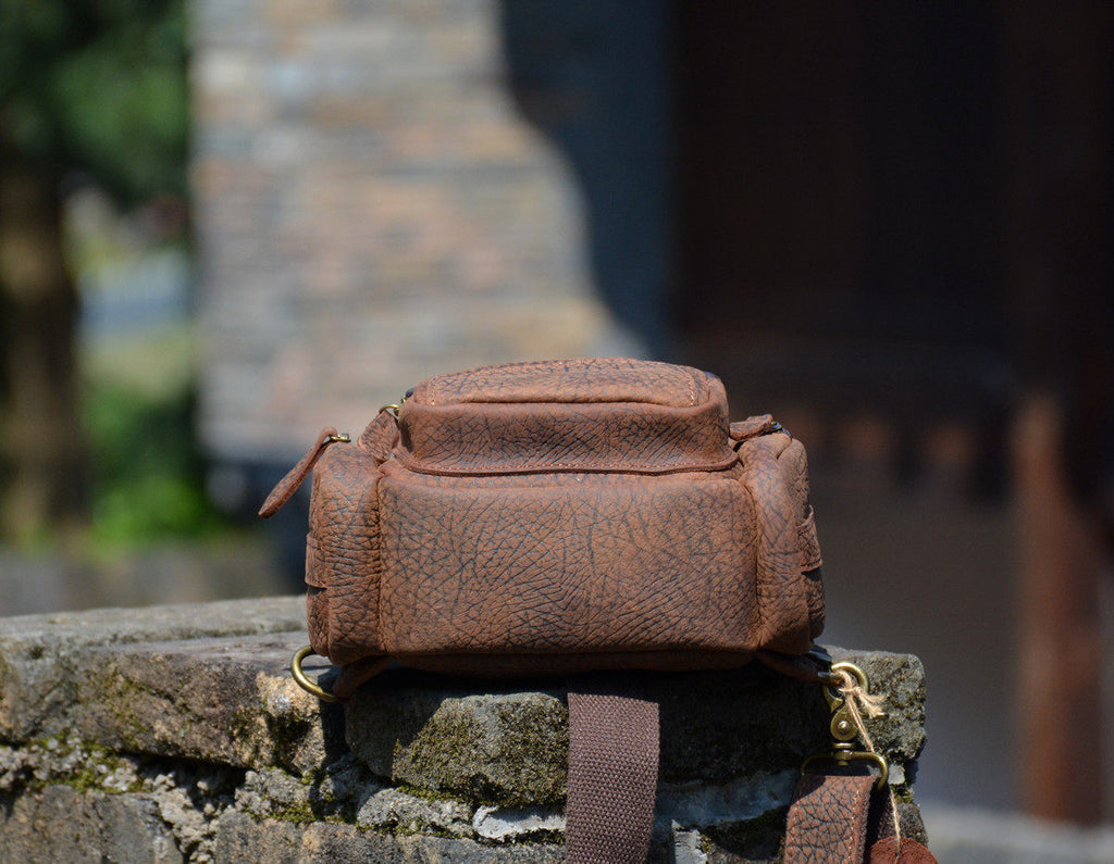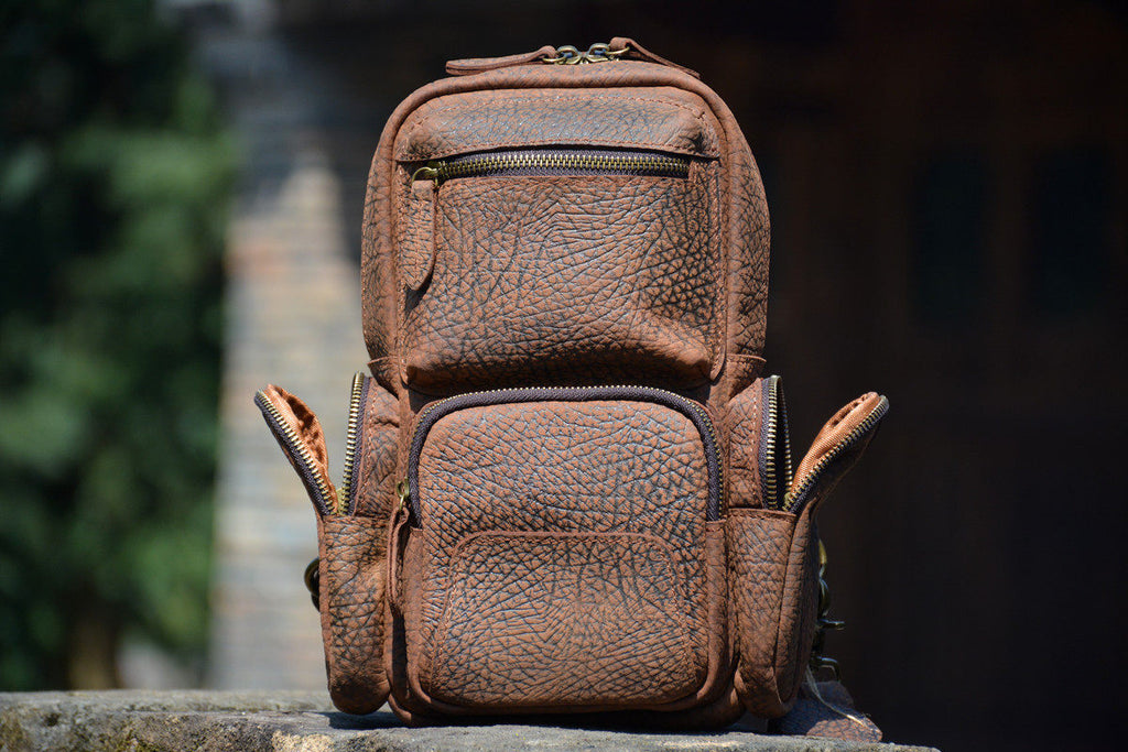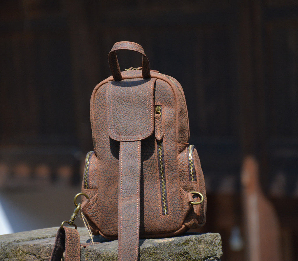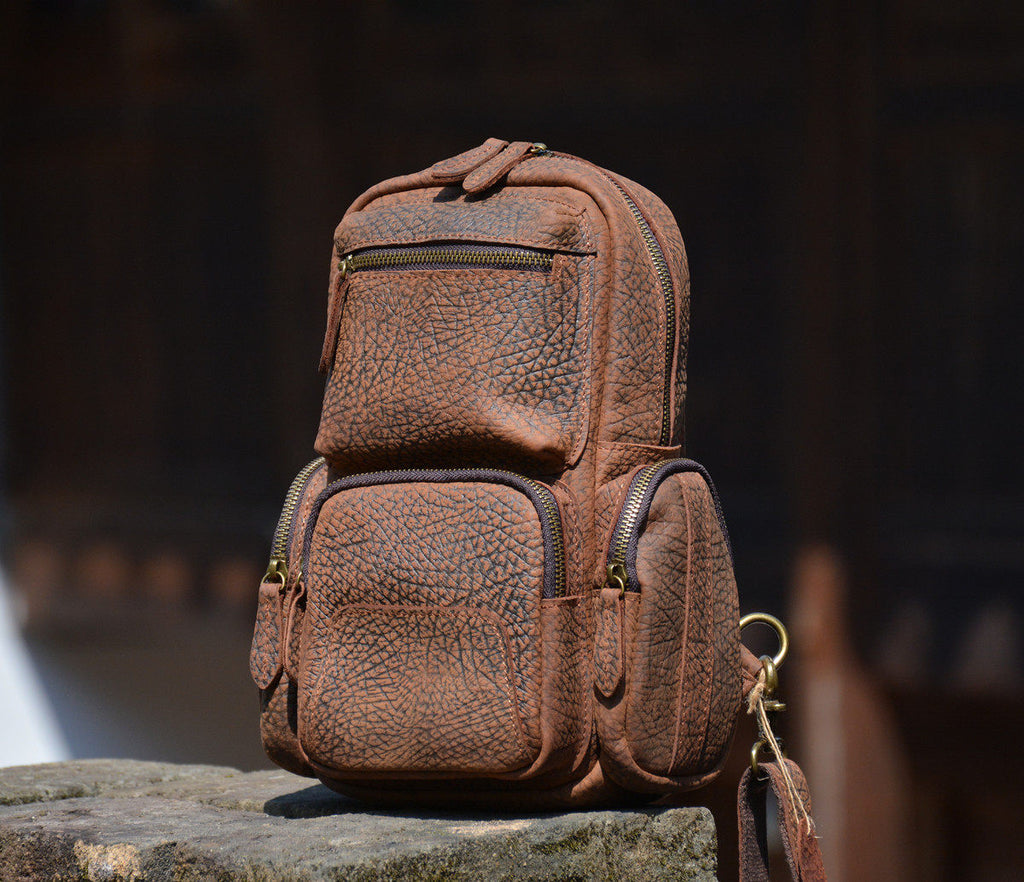 Leather Sling Backpack for Men | Vintage Elephant-Grain Leather Sling Bag