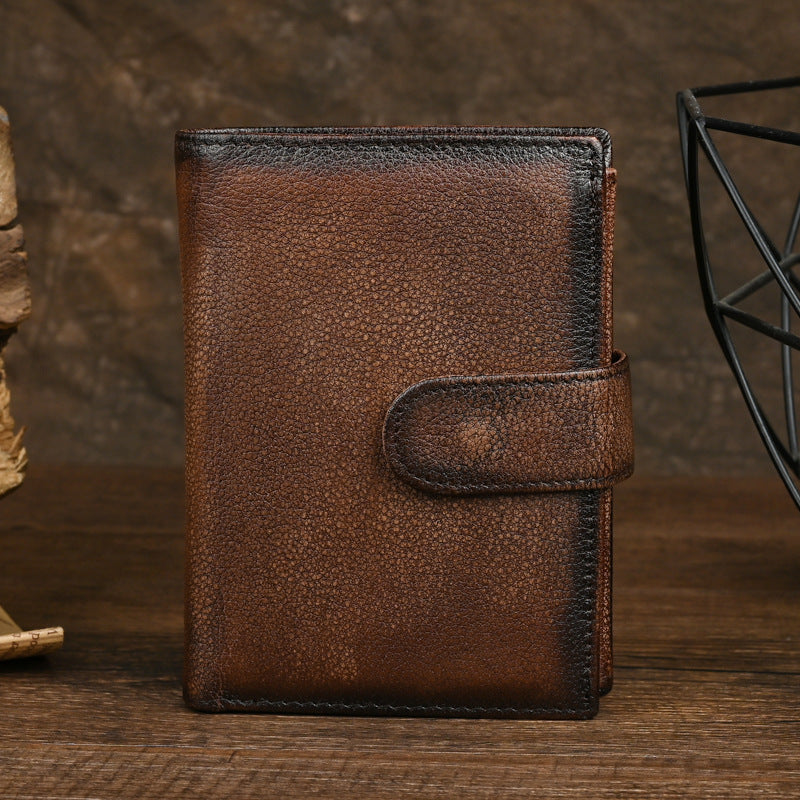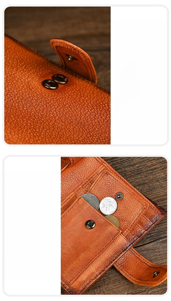 Style: Vintage tri-fold with secure closure