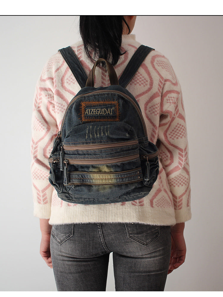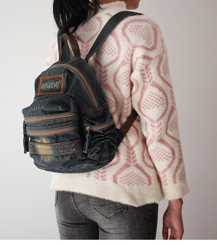 Design: Denim Womens Backpack School Backpacks Blue Vintage Denim Backpack For Women