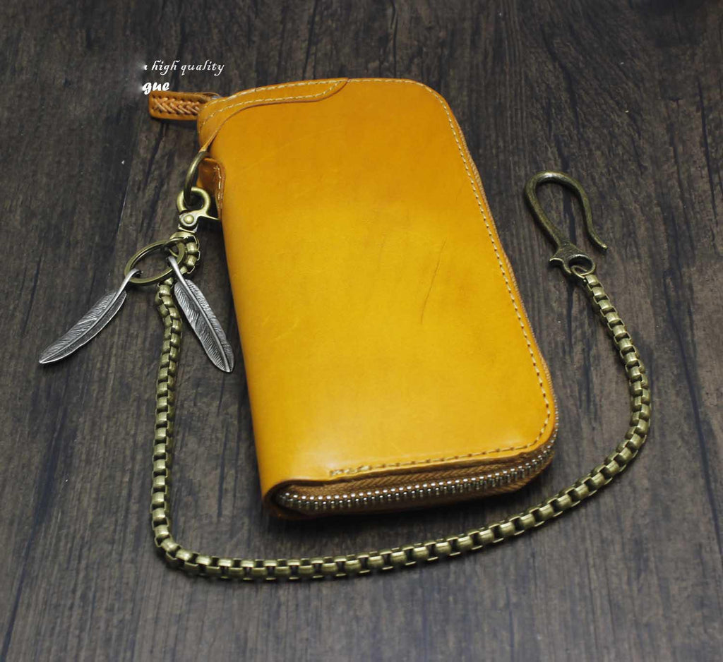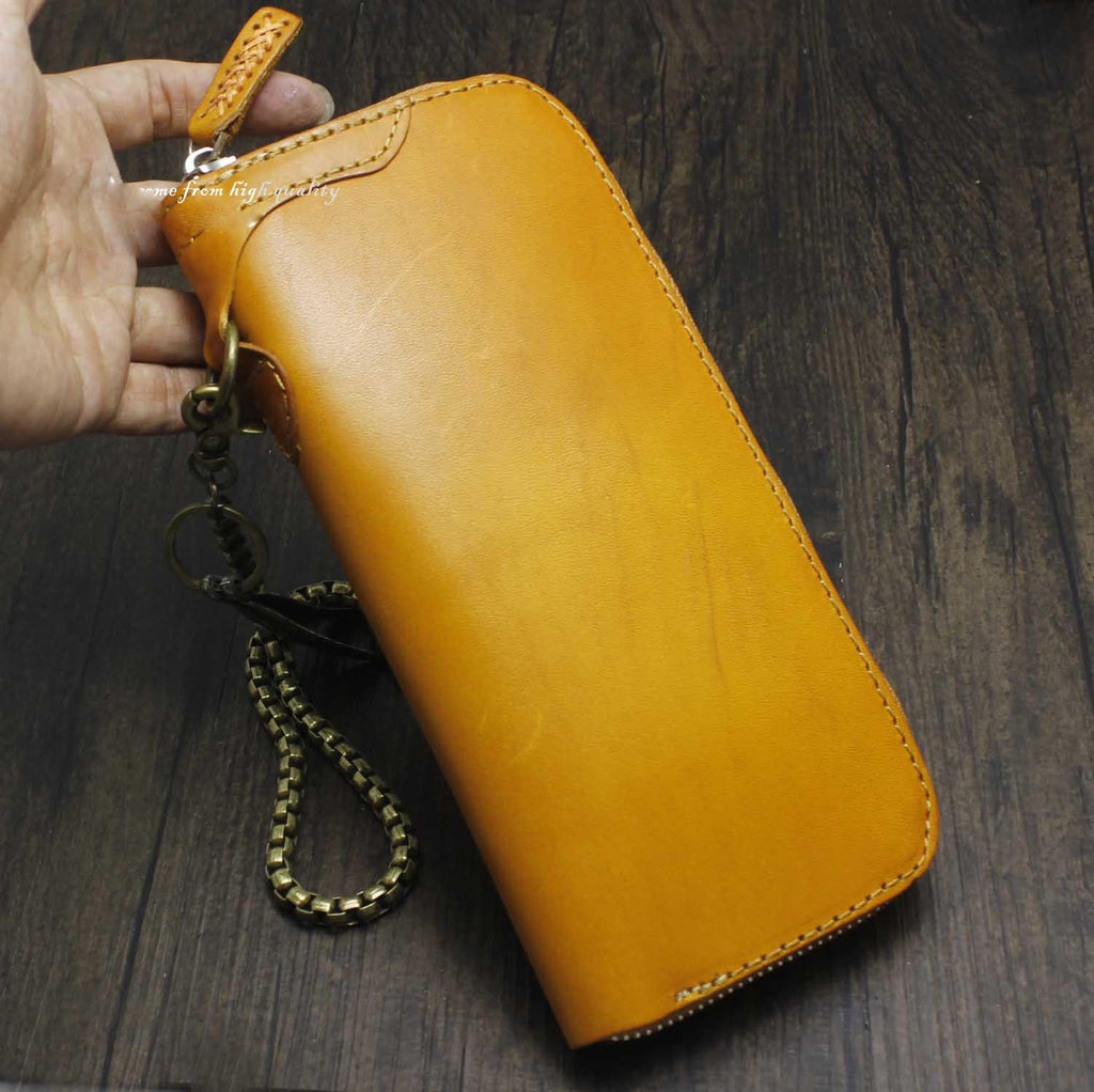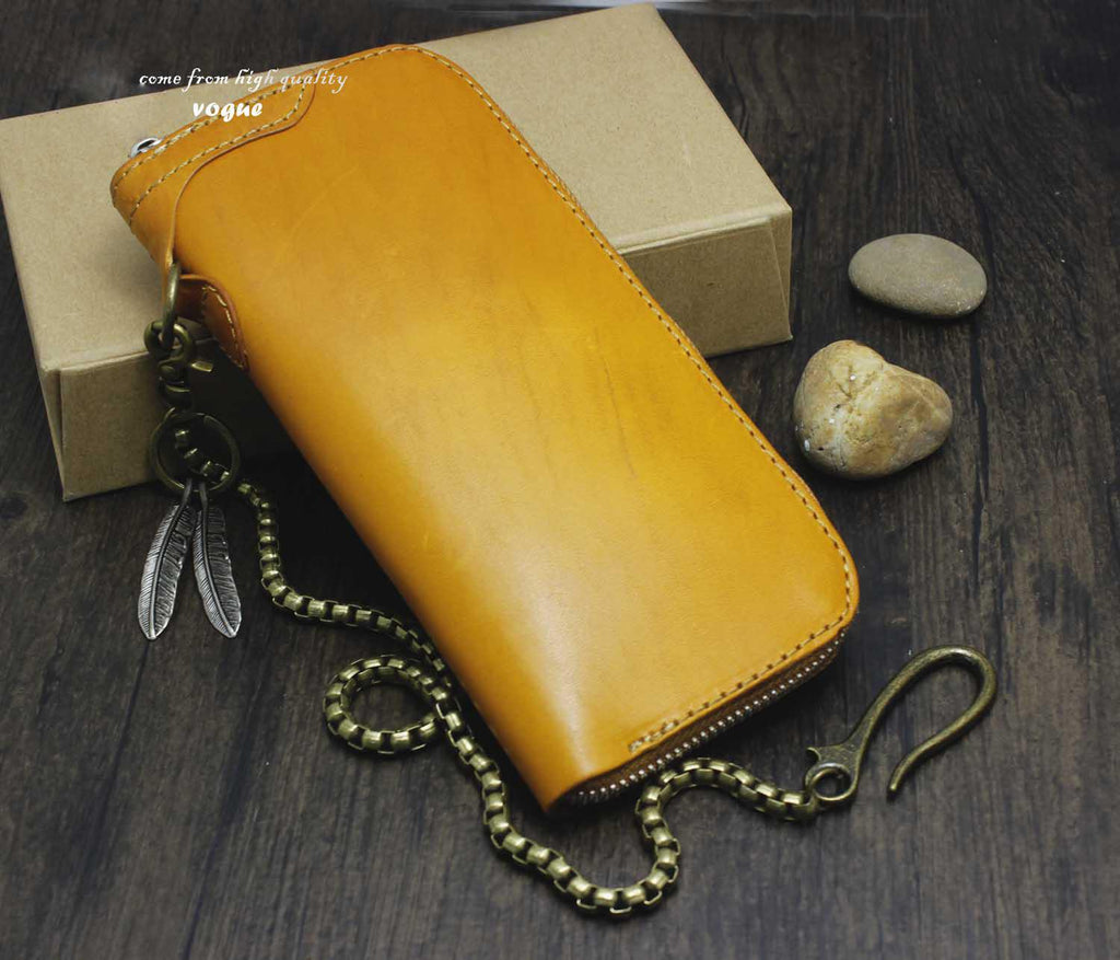 Design: Cool Brown Leather Men's Biker Wallet CHain Wallet Biker Chain Wallet Zipper Long Wallet with Chain For Men
