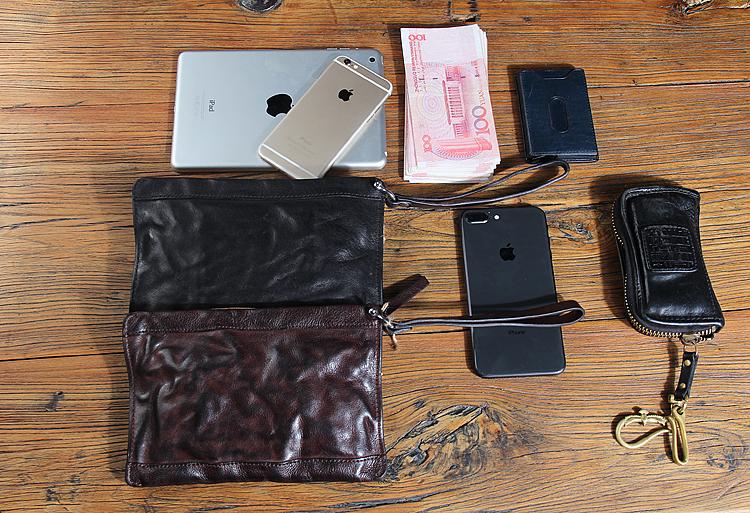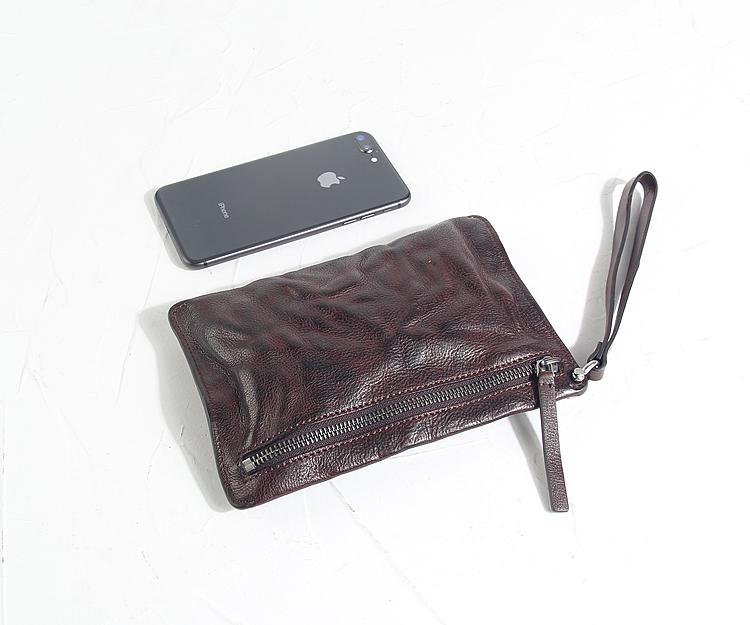 Design: Fashion Leather Mens Clutch Cool Black Slim Wallet Zipper Clutch Wristlet Wallet for Men