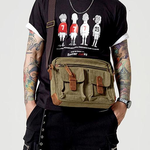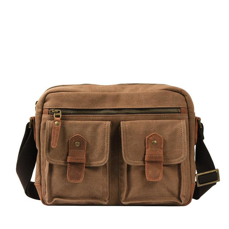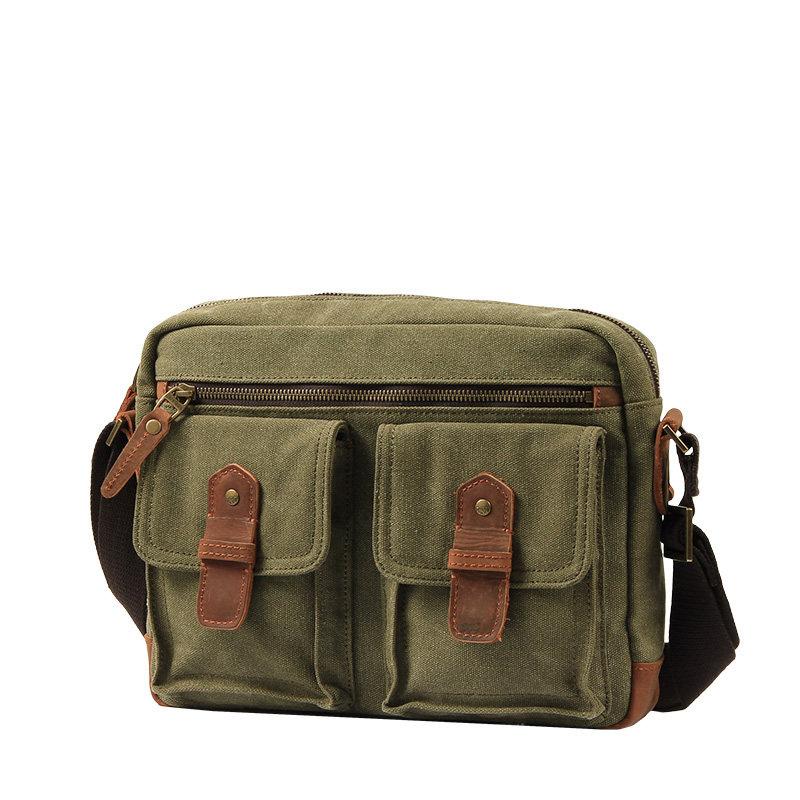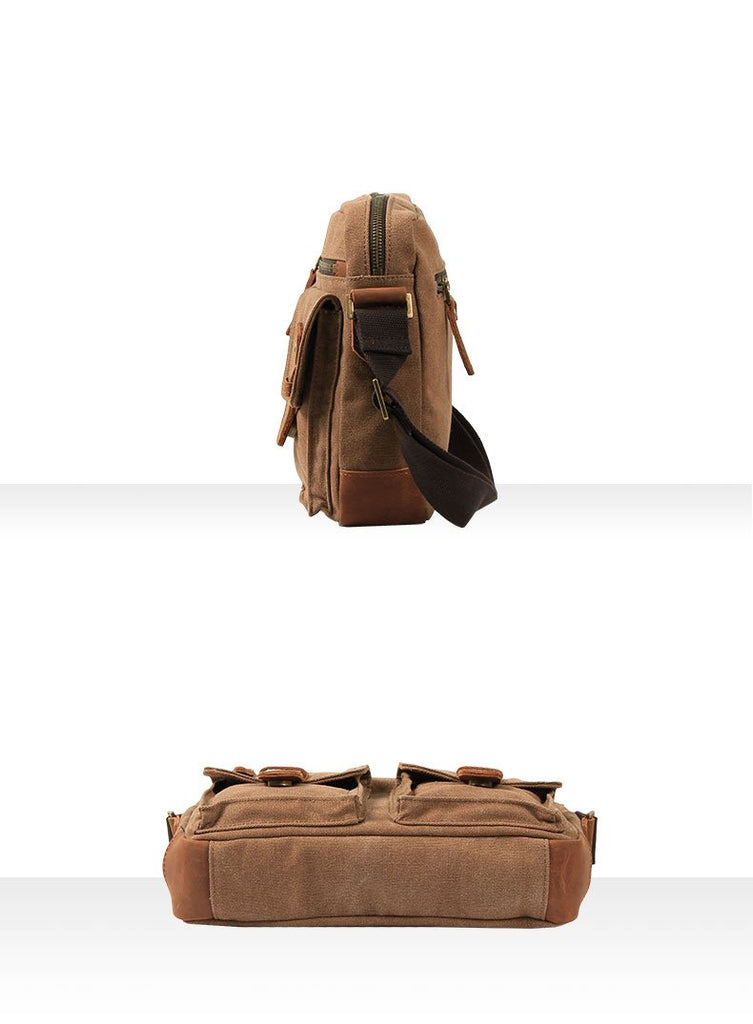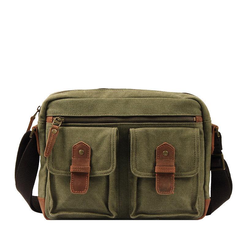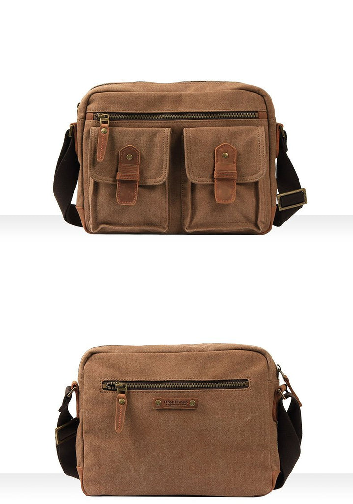 Design: Fashion Canvas Leather Mens Khaki Side Bag Messenger Bags Army Green Canvas Courier Bag for Men