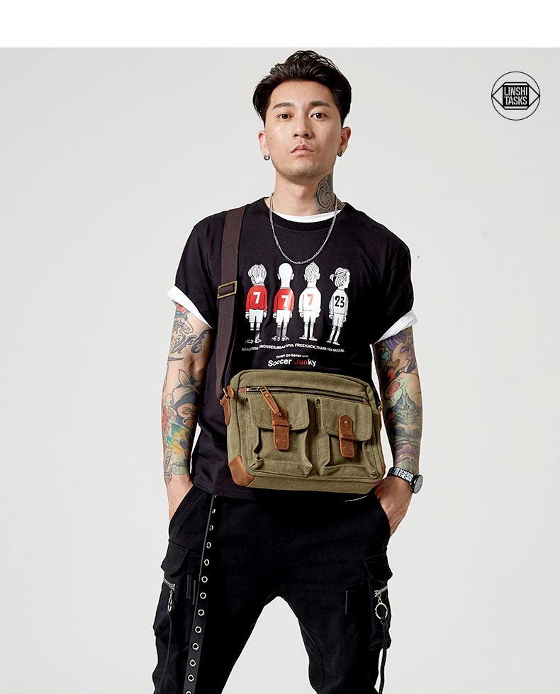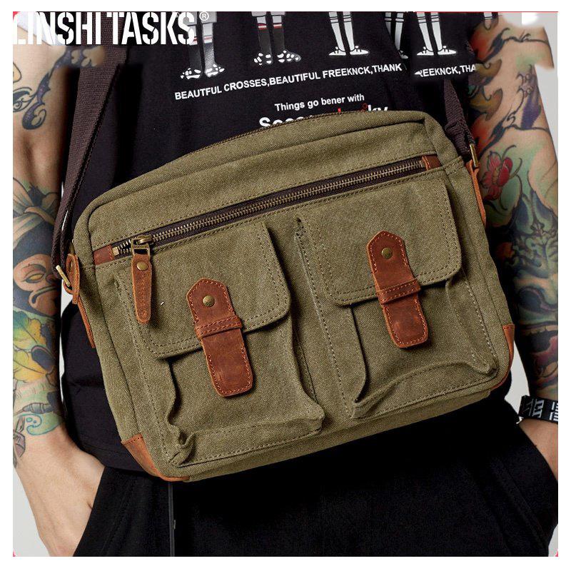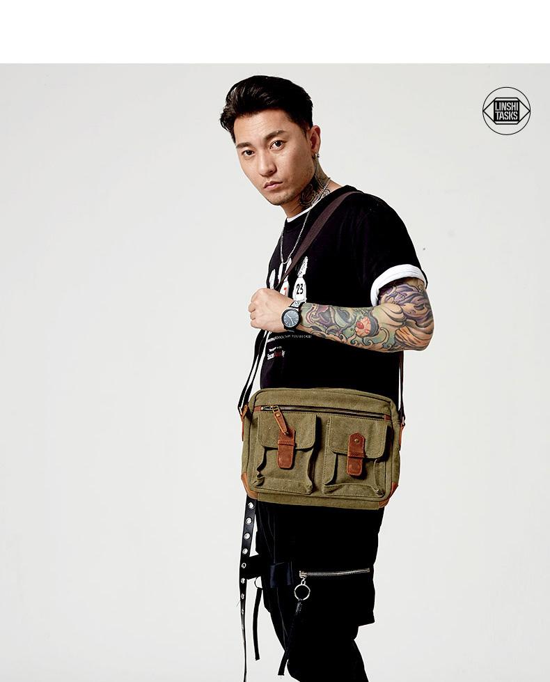 Style: Fashion Canvas Leather Mens Khaki Side Bag Messenger Bags Army Green Canvas Courier Bag for Men