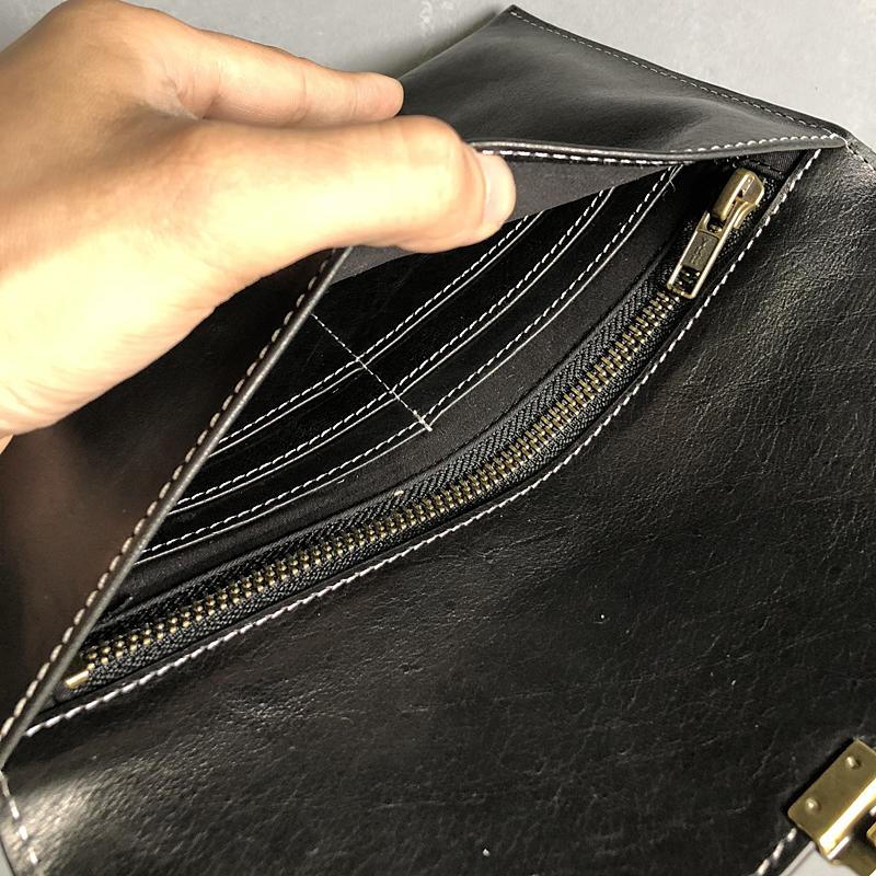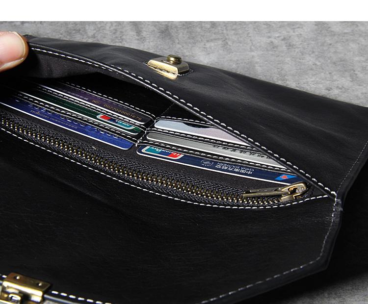Design: Genuine Leather Black Mens 8 inches Clutch Bag Zipper Womens Brown Clutch Wallet Wristlet Wallet for Men