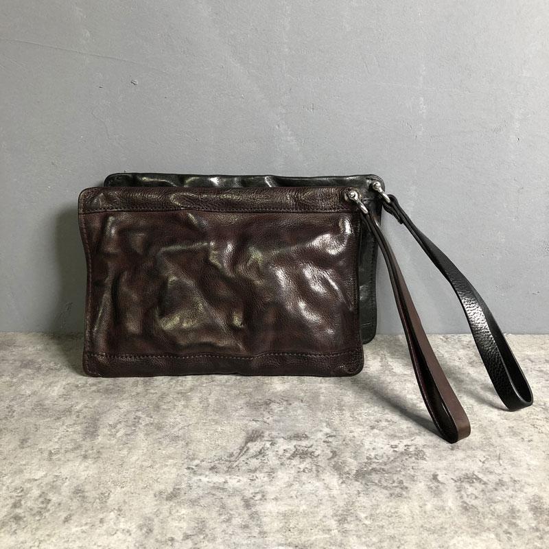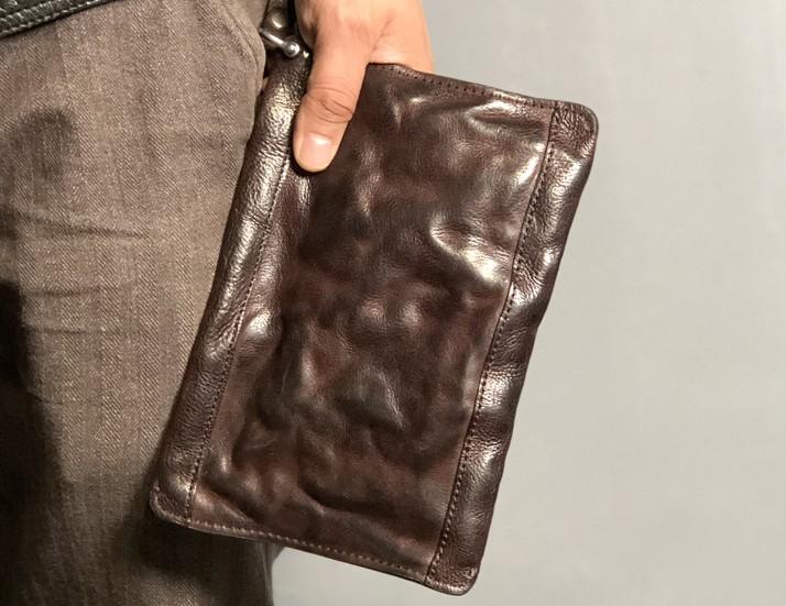 Design: Genuine Leather Mens Clutch Cool Slim Wallet Zipper Clutch Wristlet Wallet for Men