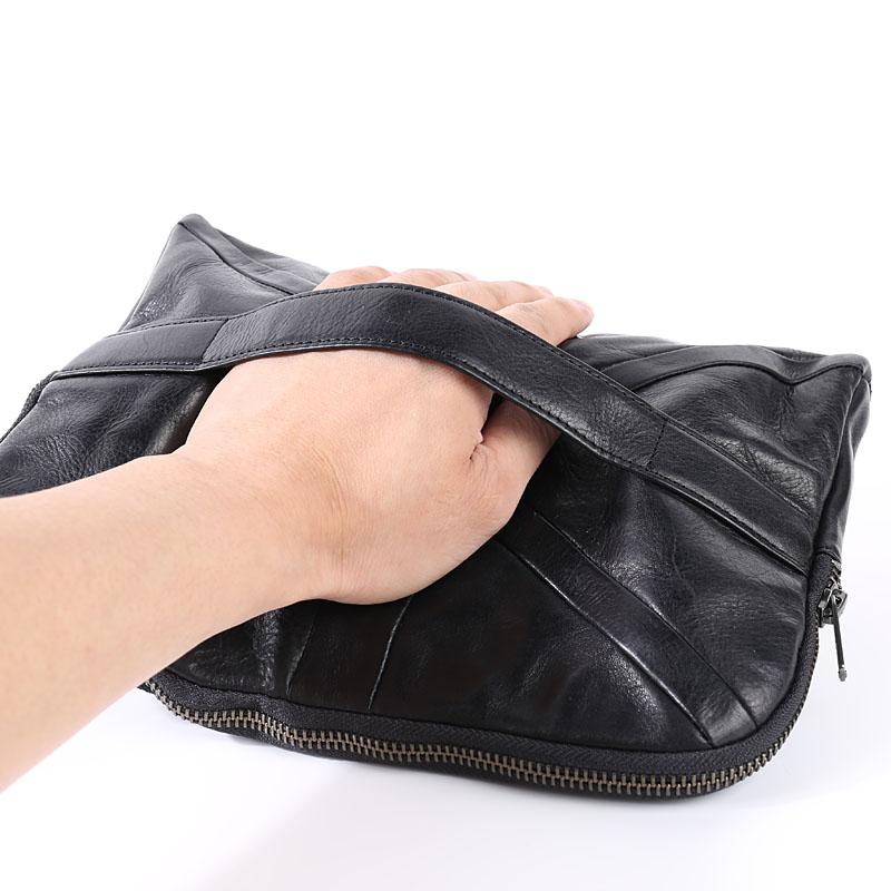 Design: Genuine Leather Business Mens Clutch Cool Black Hand Bag Zipper Clutch Wristlet Large Clutch for Men