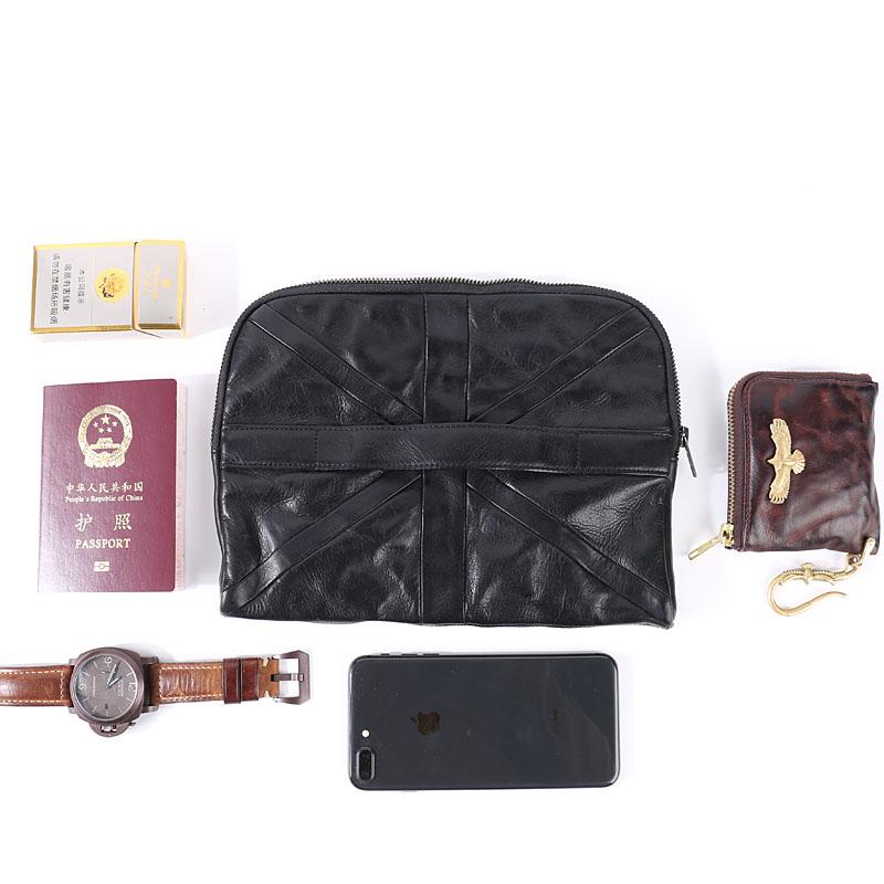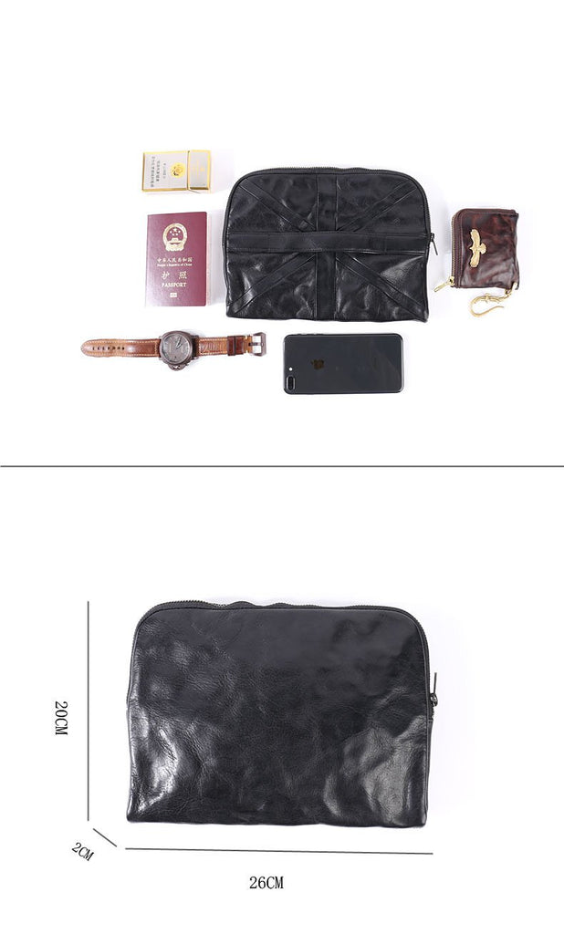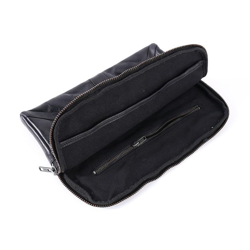 Style: Genuine Leather Business Mens Clutch Cool Black Hand Bag Zipper Clutch Wristlet Large Clutch for Men