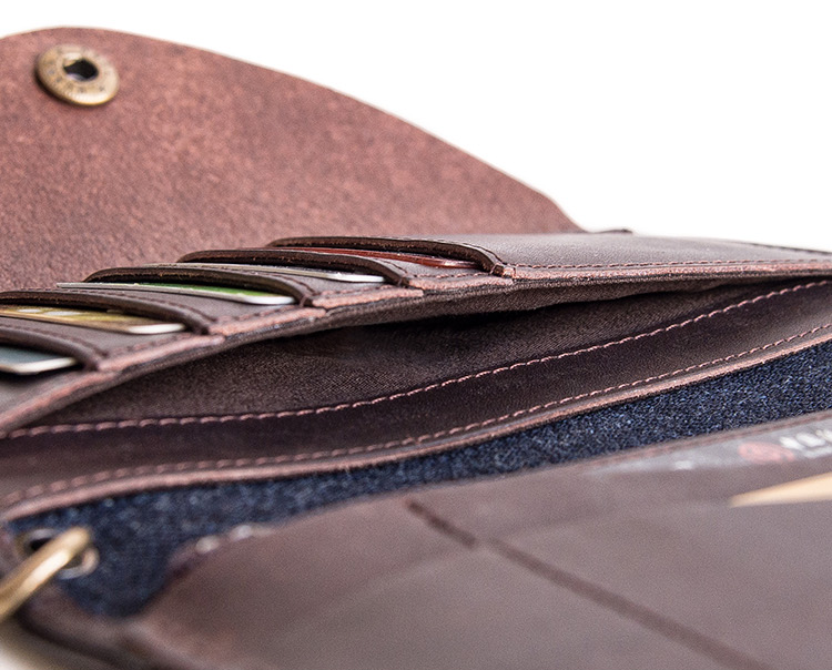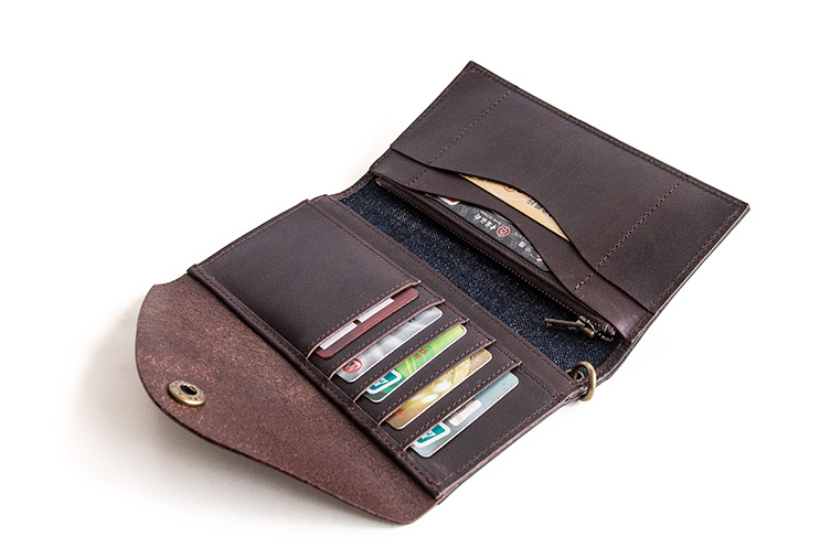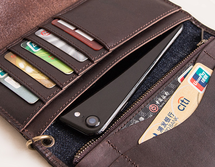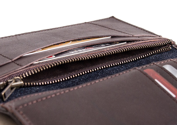 Slots: 1?full size bill slot,?7?card holders, 1 zipper slot,