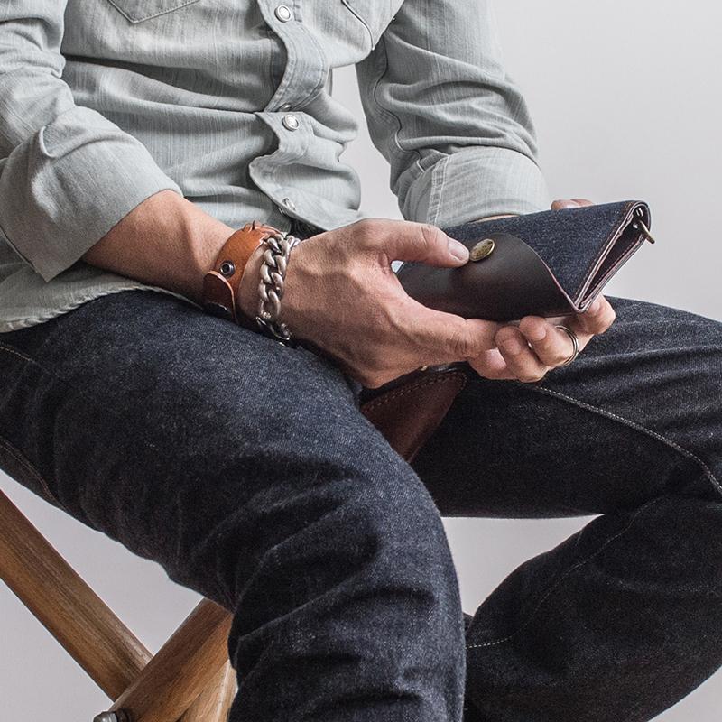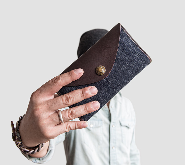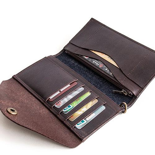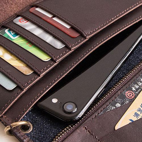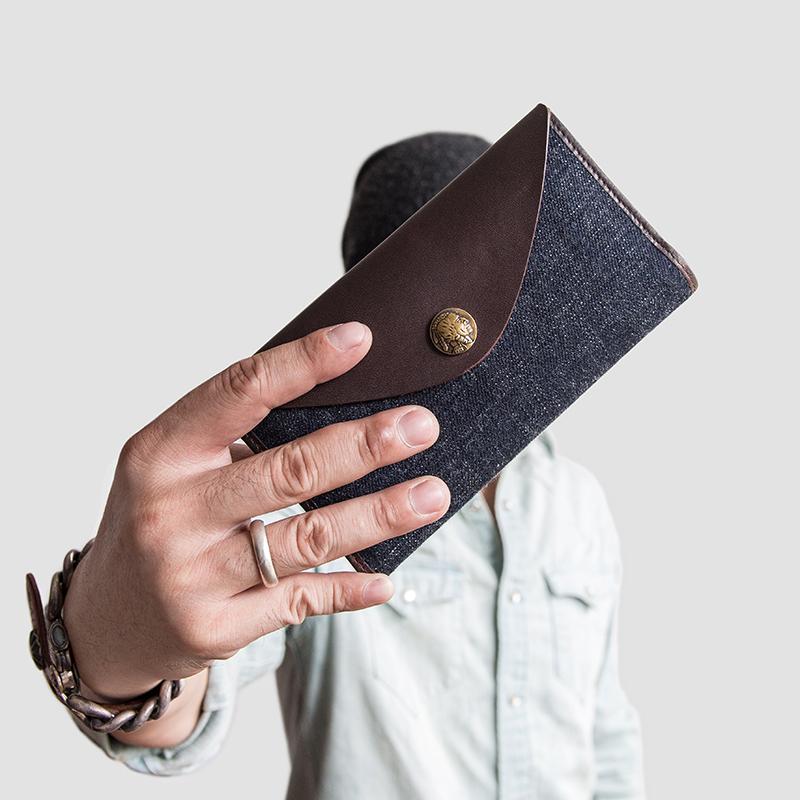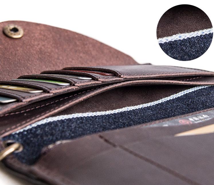 Design: Genuine Leather Jean Mens Cool Long Leather Wallet Men Cards Wallets Bifold for Men