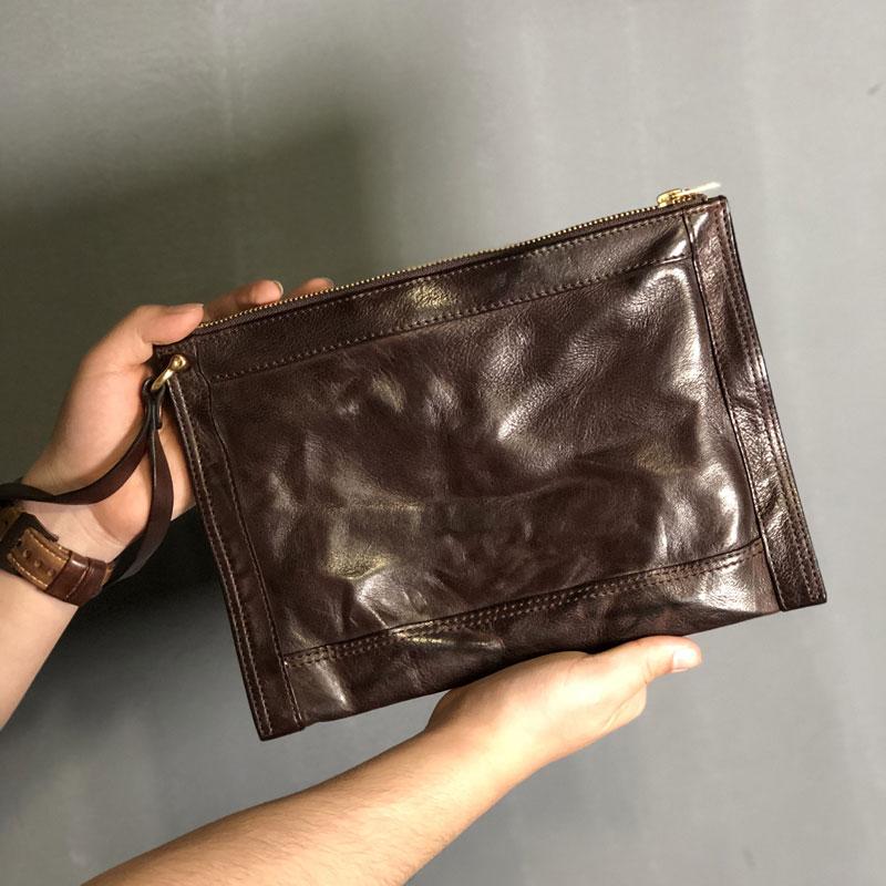Design: Genuine Leather Braided Mens Clutch Cool Slim Wallet Zipper Clutch Wristlet Wallet for Men