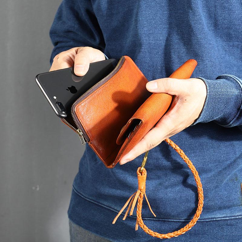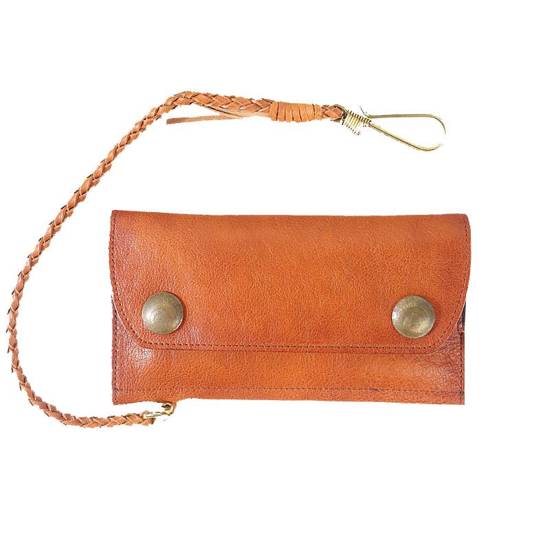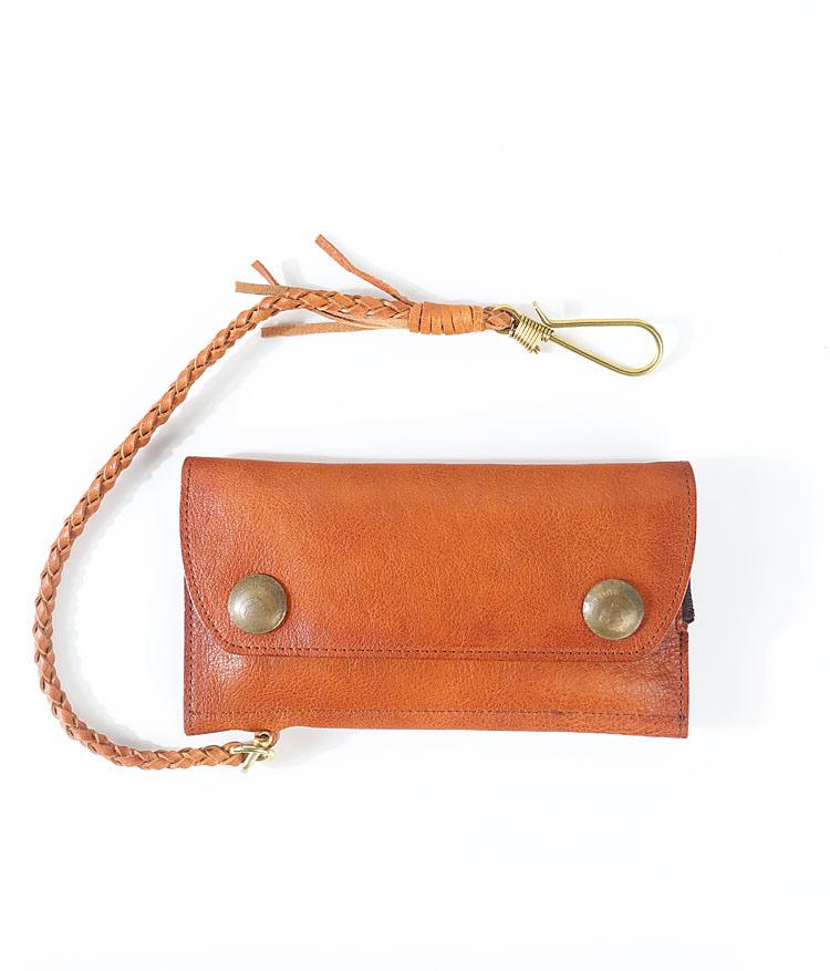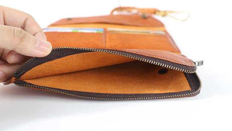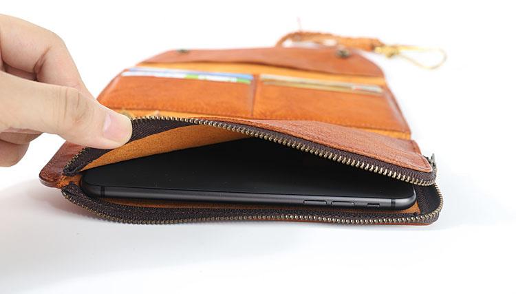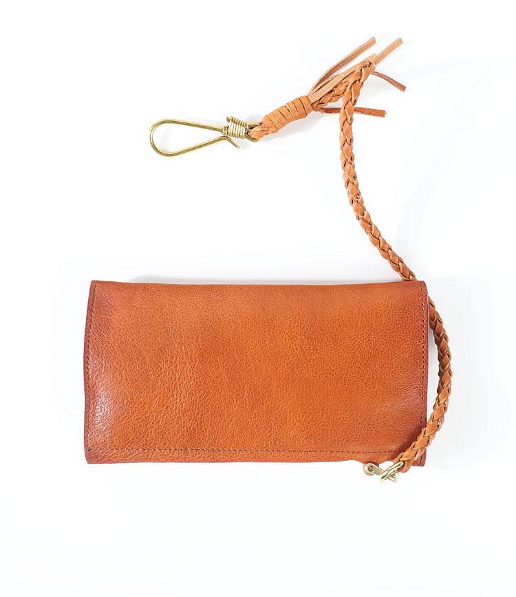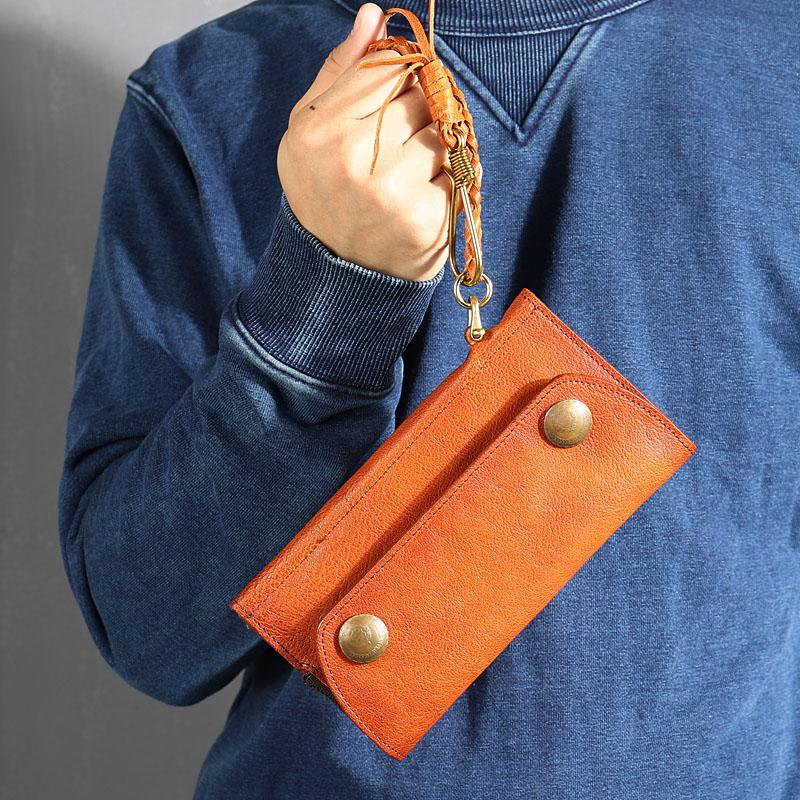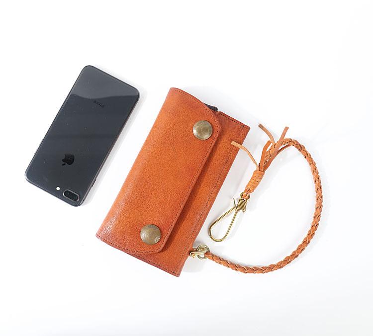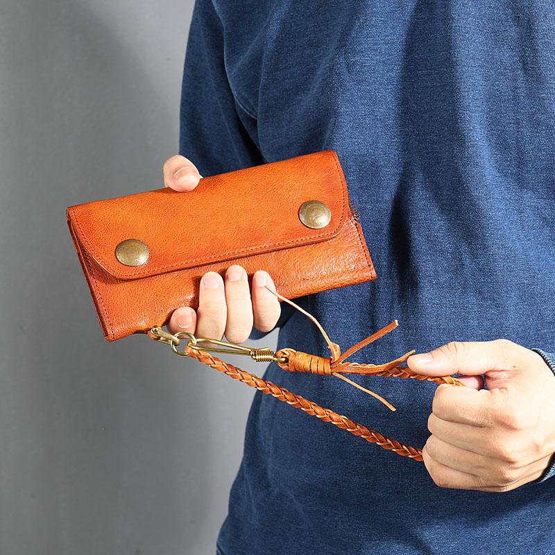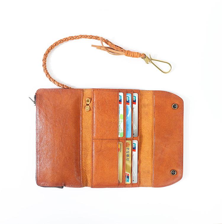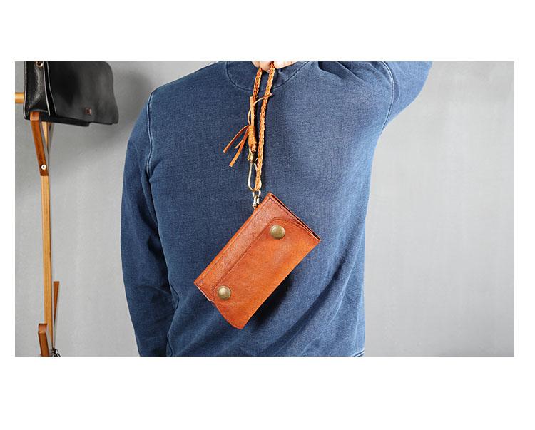 Design: Genuine Leather Mens Cool Khaki Trifold Chain Wallet Long Leather Wallet Clutch Wristlet Wallet for Men