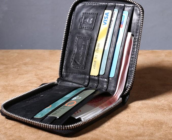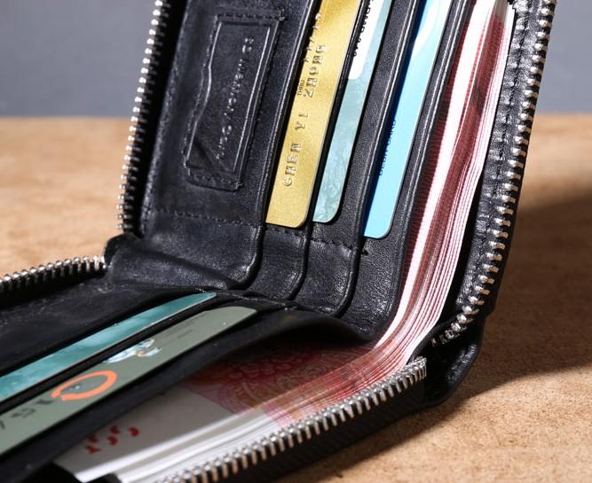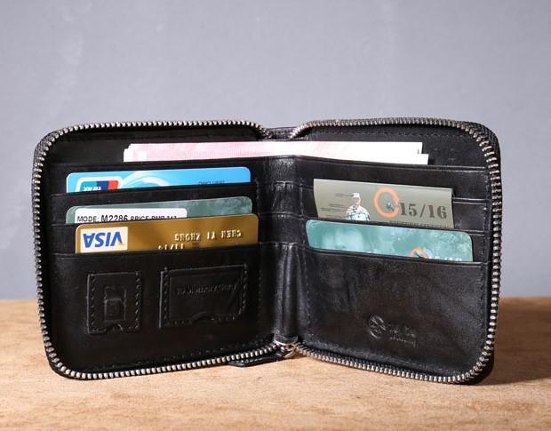Design: Genuine Leather Mens Cool billfold Leather Wallet Men Zipper Wallet Bifold for Men
