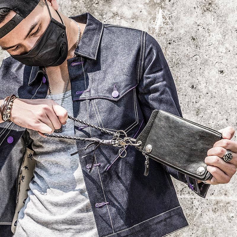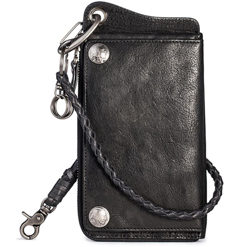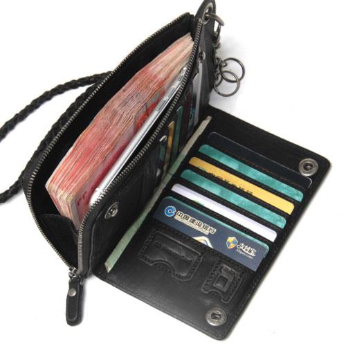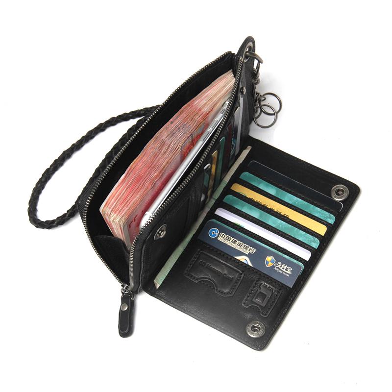 Style: Genuine Mens Cool Long Leather Chain Wallet Cards Biker Trucker Wristlet Wallet